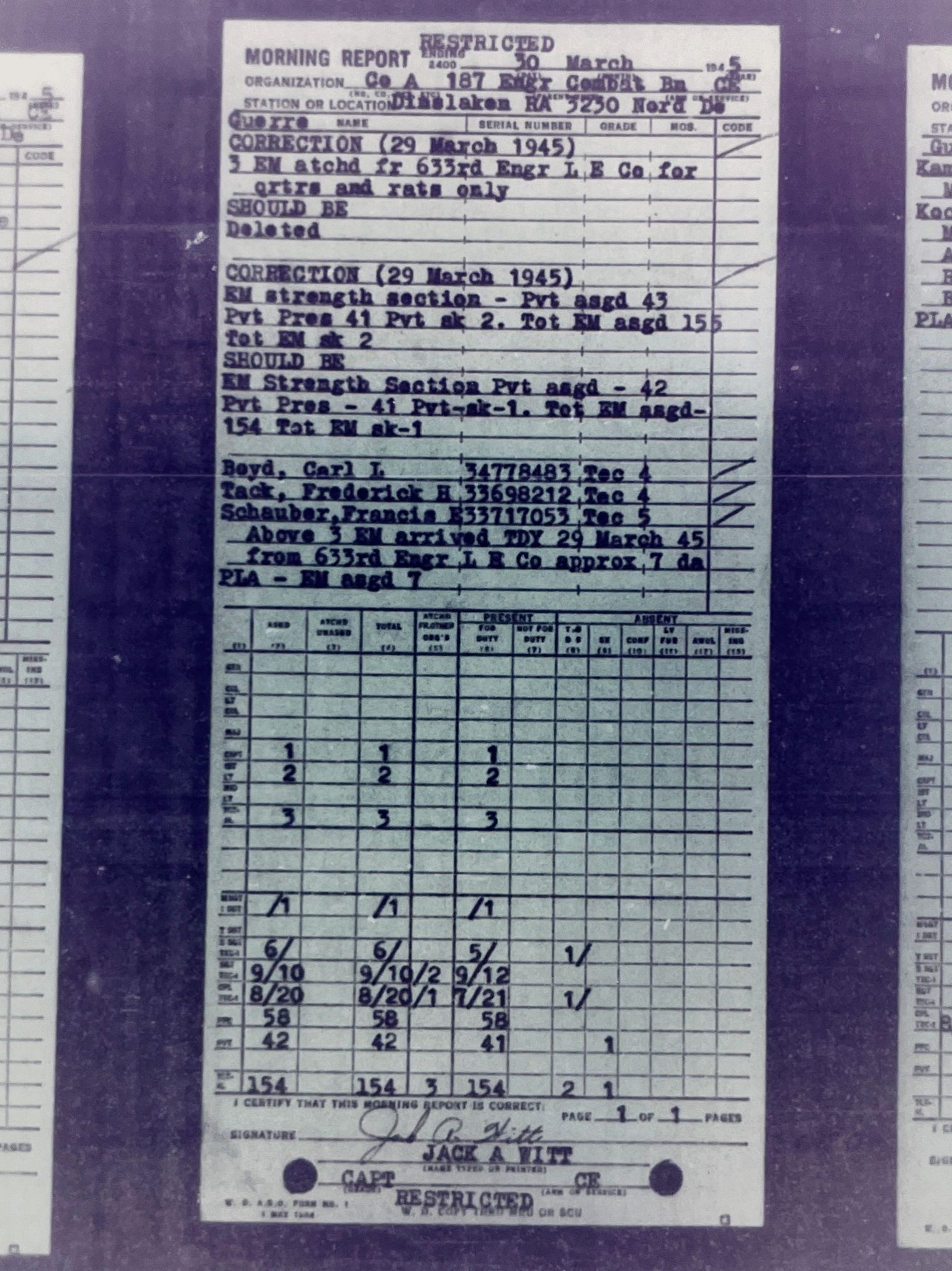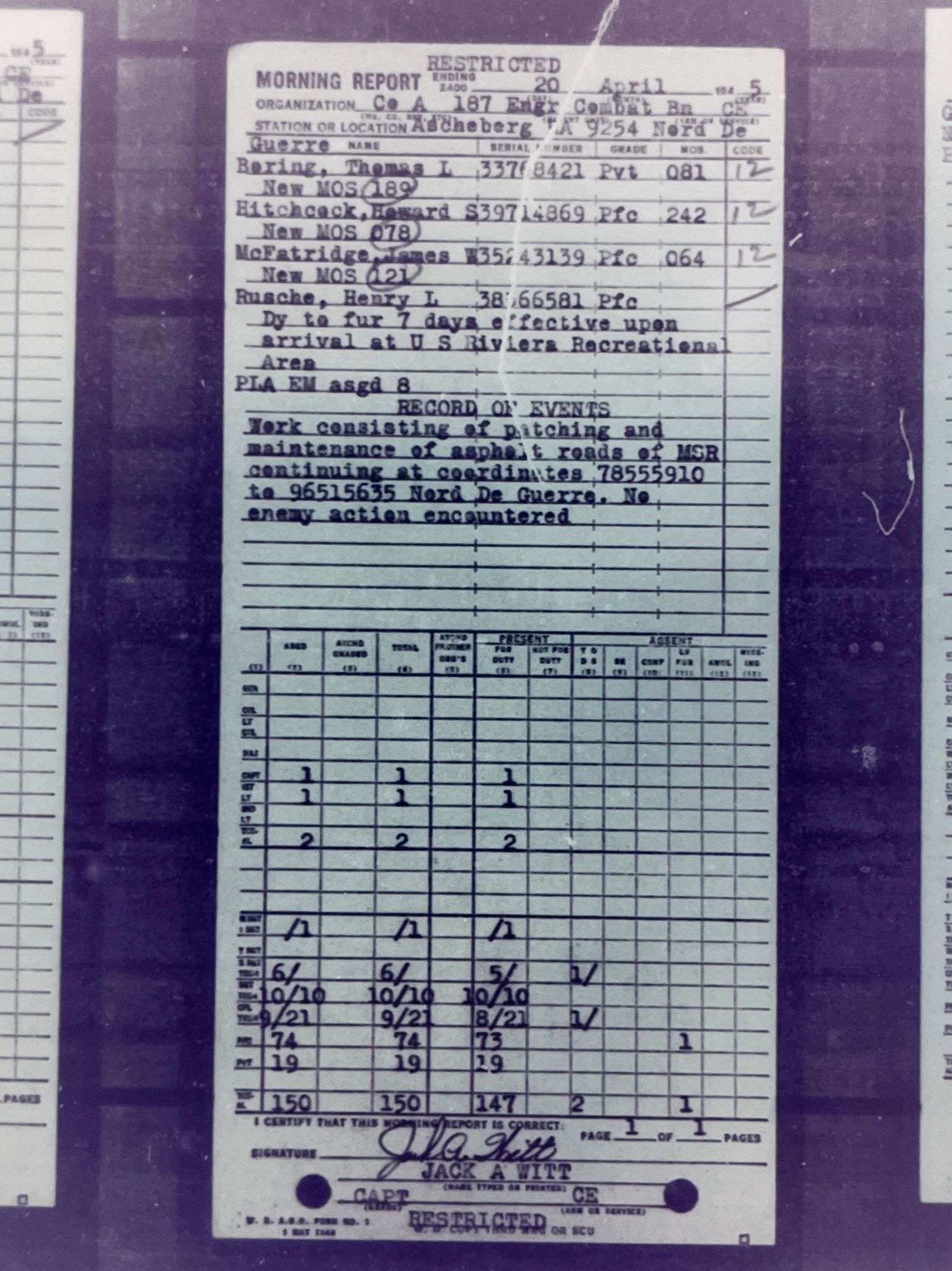 I would like to thank Dail Neely for the effort and cost for this information of the daily reports for the 187th ECB.