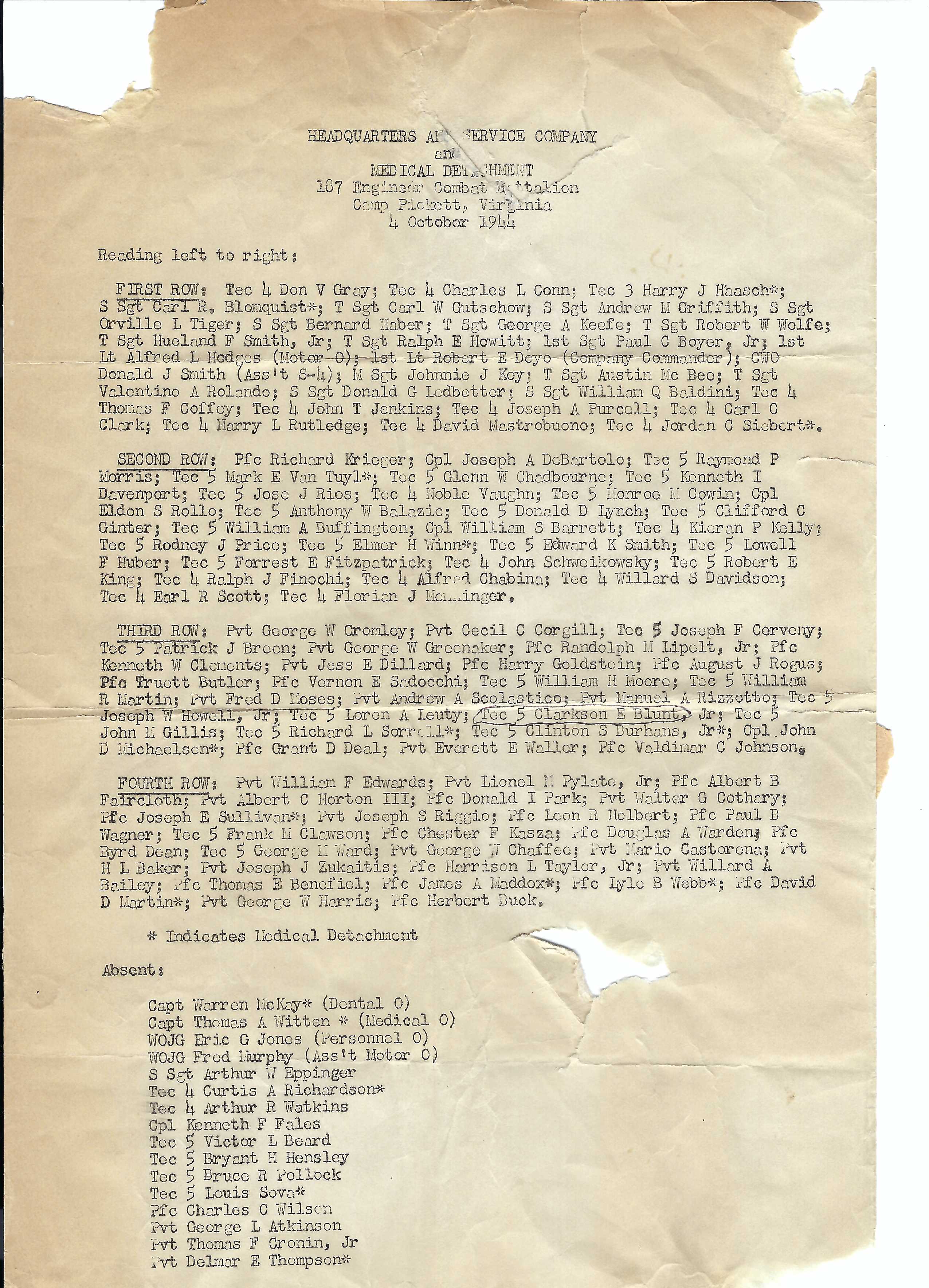 Please keep in mind that this is a work in progress and probably will always be. Information on this unit is very hard to find and I will do my best to provide you with anything new in the future. Any information, photos, and suggestions that will help in this search for history will be Appreciated by future relatives looking for their relatives and what they did during the WWII service to the country.