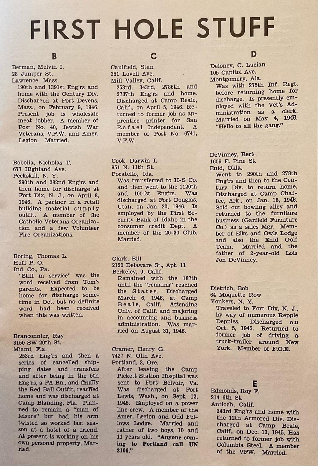This is the 187th Company A newsletter published in 1946. Kathy Polenske provided this for us to enjoy. Thanks, Kathy!