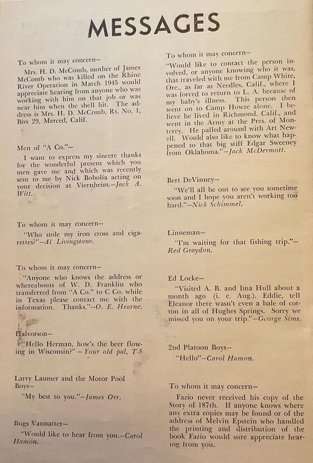 187th Engineer Combat Battalion 1946 Company A Pamphlet