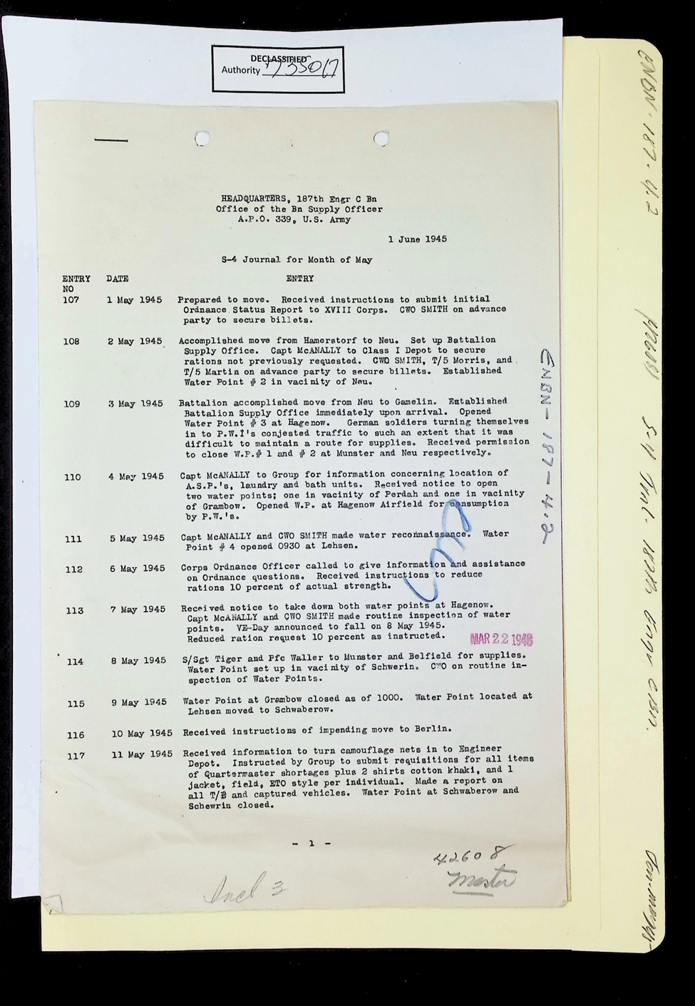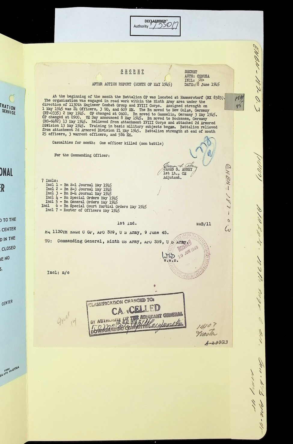 187th Engineer Combat Battalion June 1945 Reports