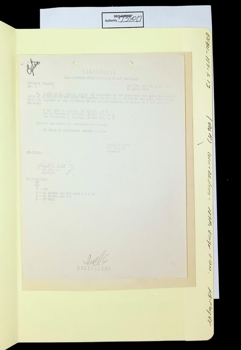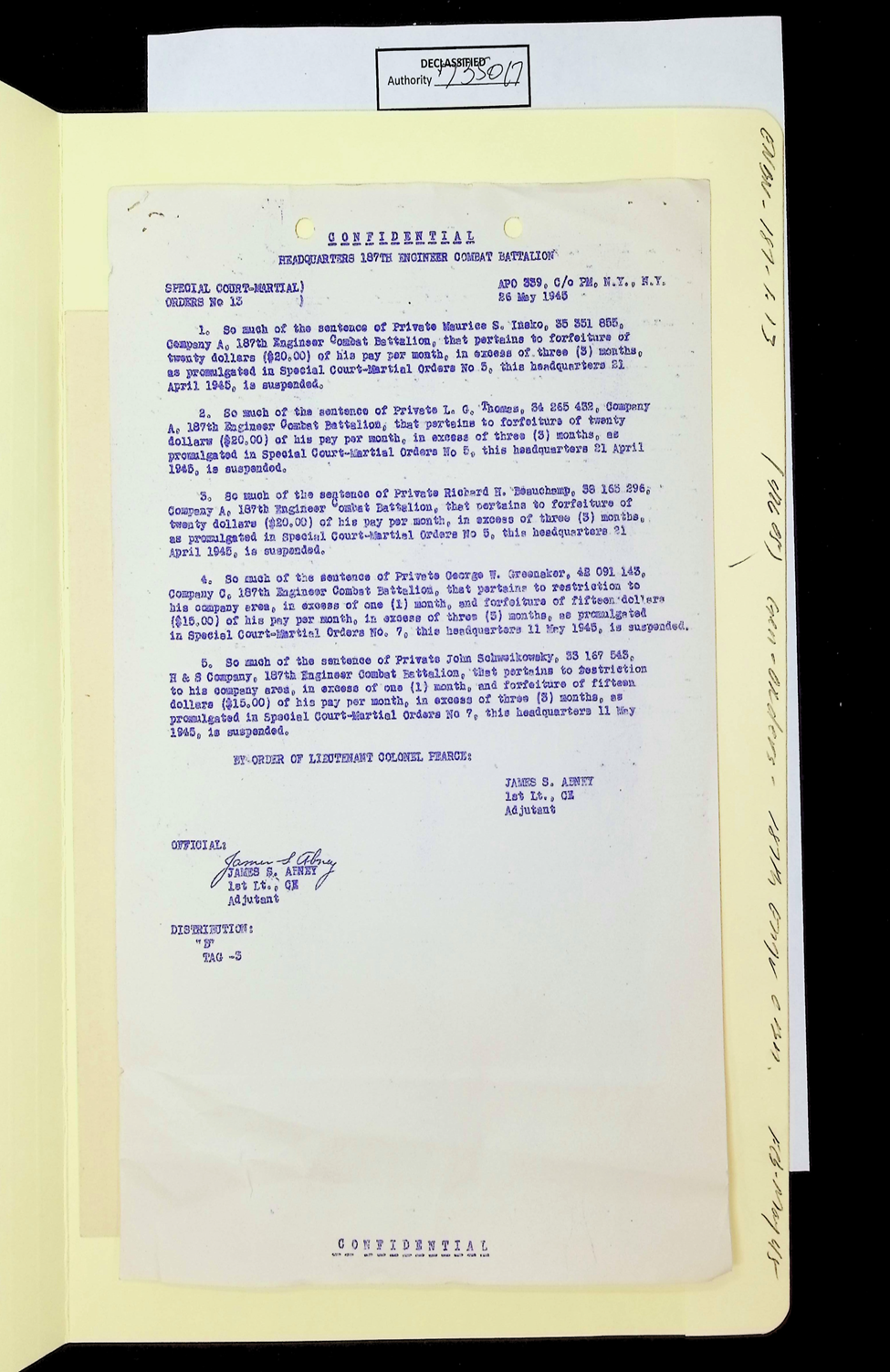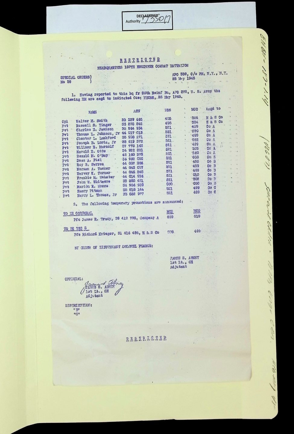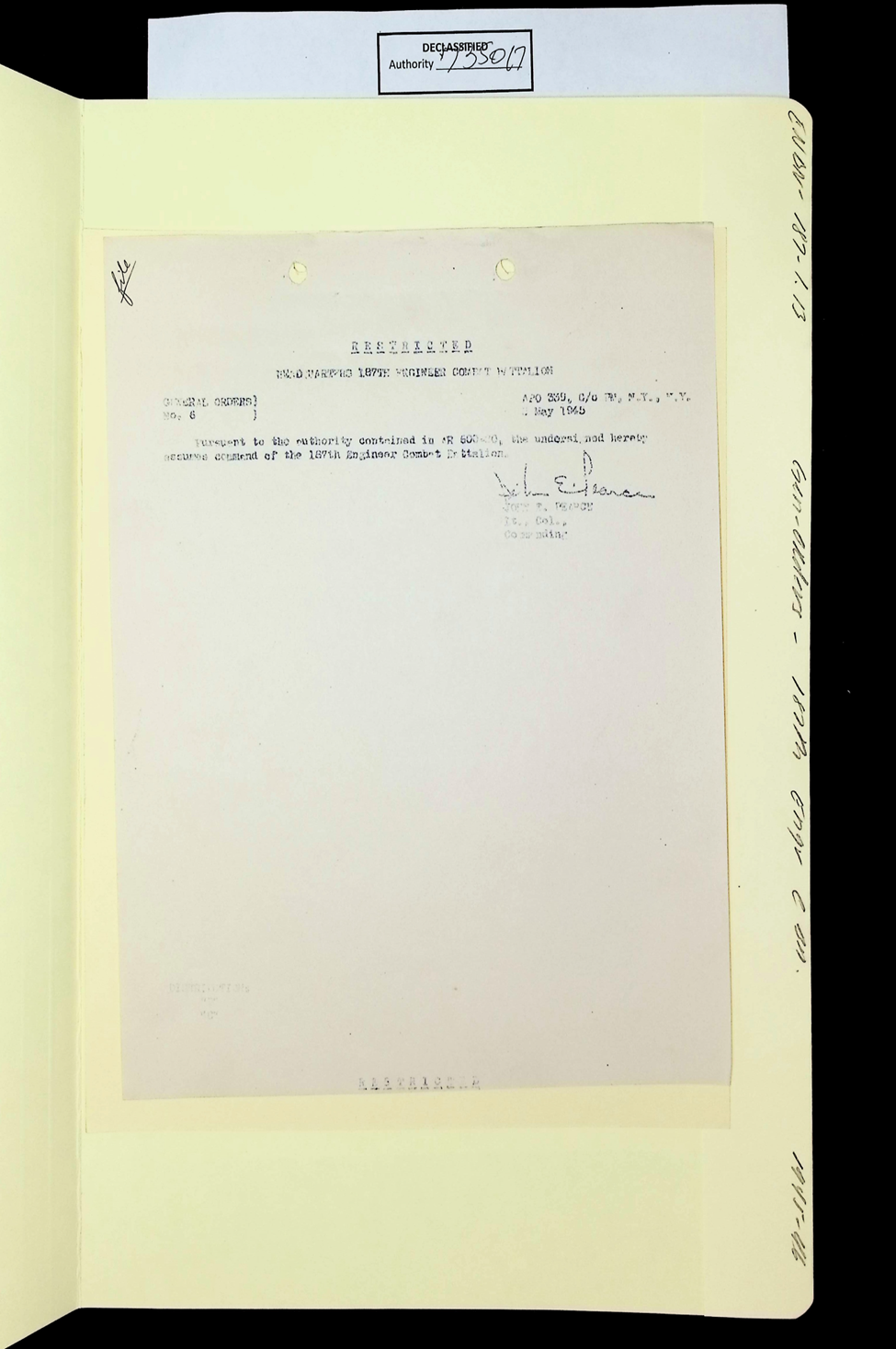 187th Engineer Combat Battalion General Orders 2 May 1945