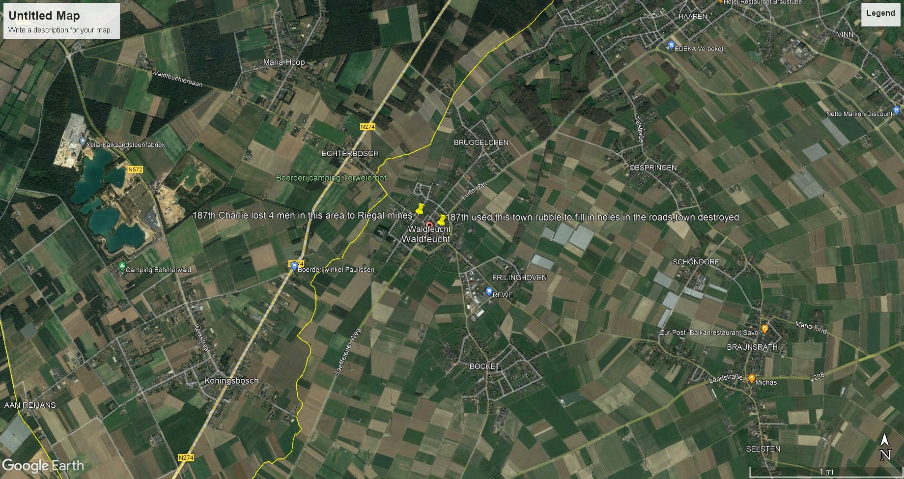 On February 22, 1945, the 187th encountered a land mine by a destroyed German tank which killed one officer, and 3 enlisted men.