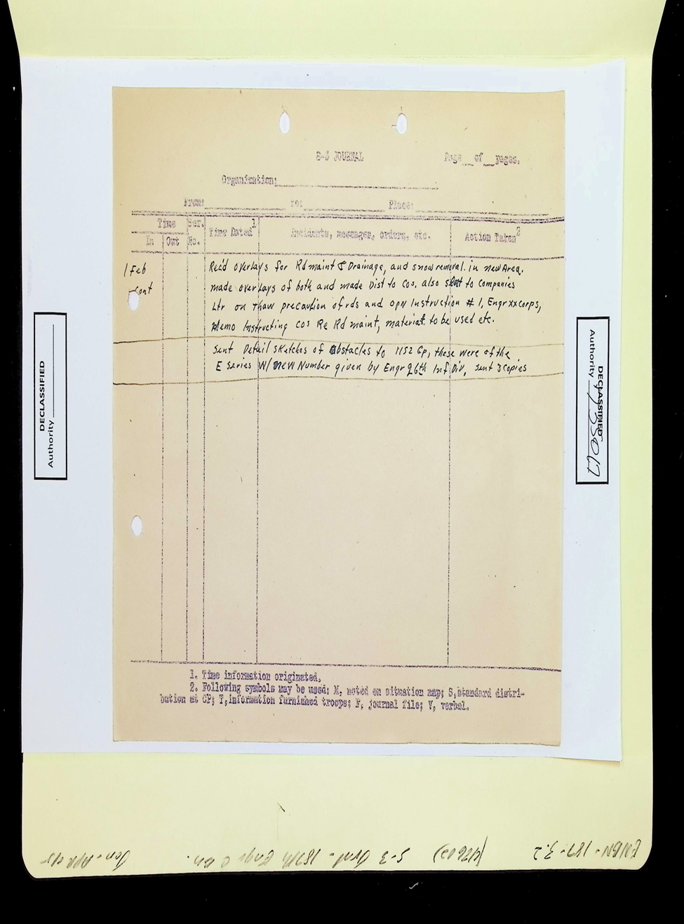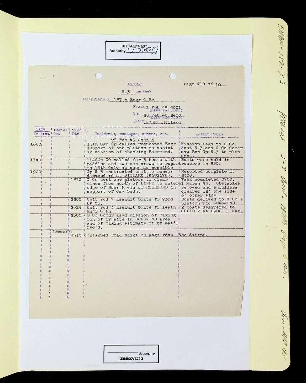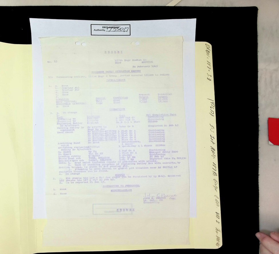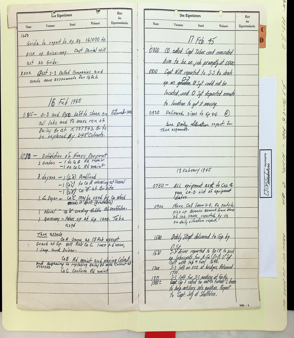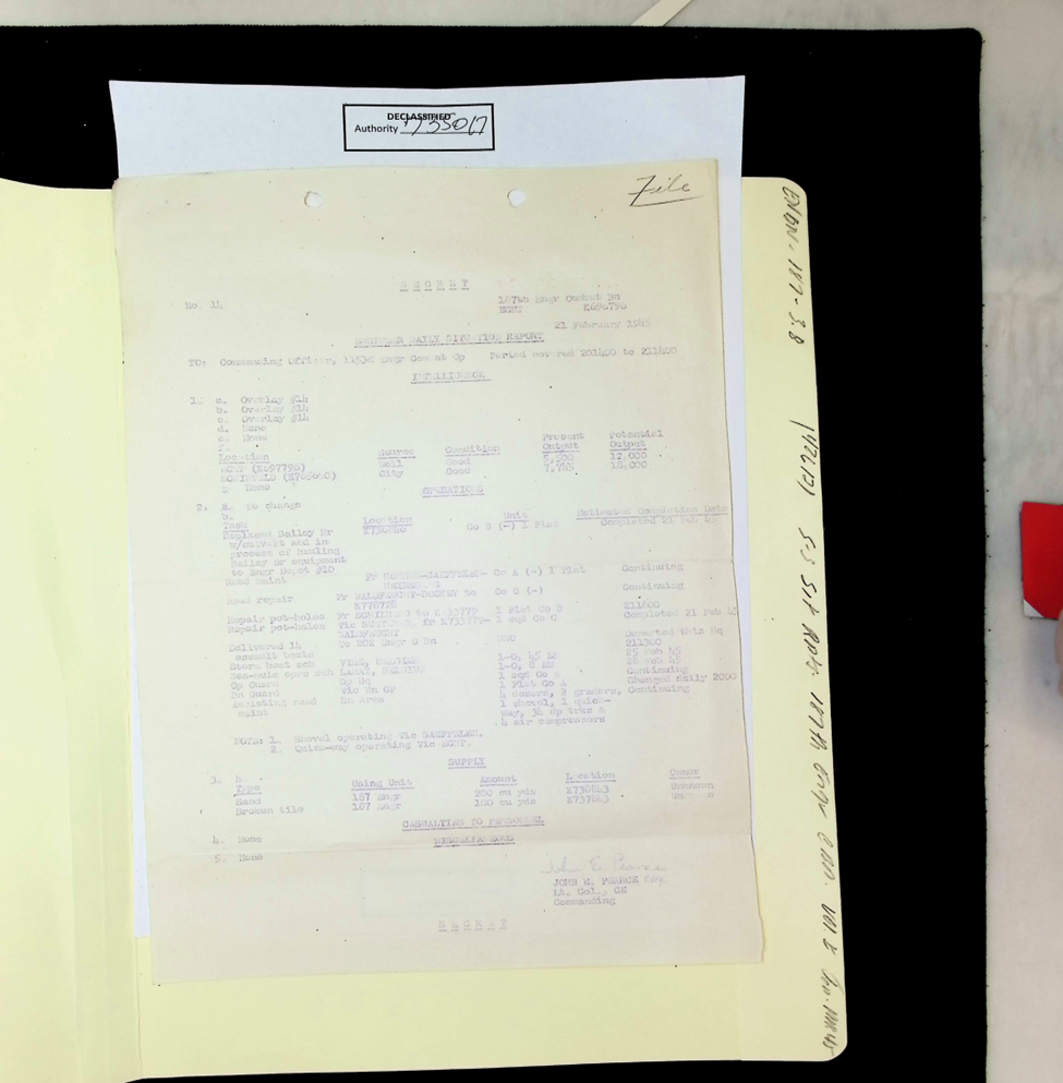 187th Engineer Combat Battalion Daily Situation Reports S-4 February 1945