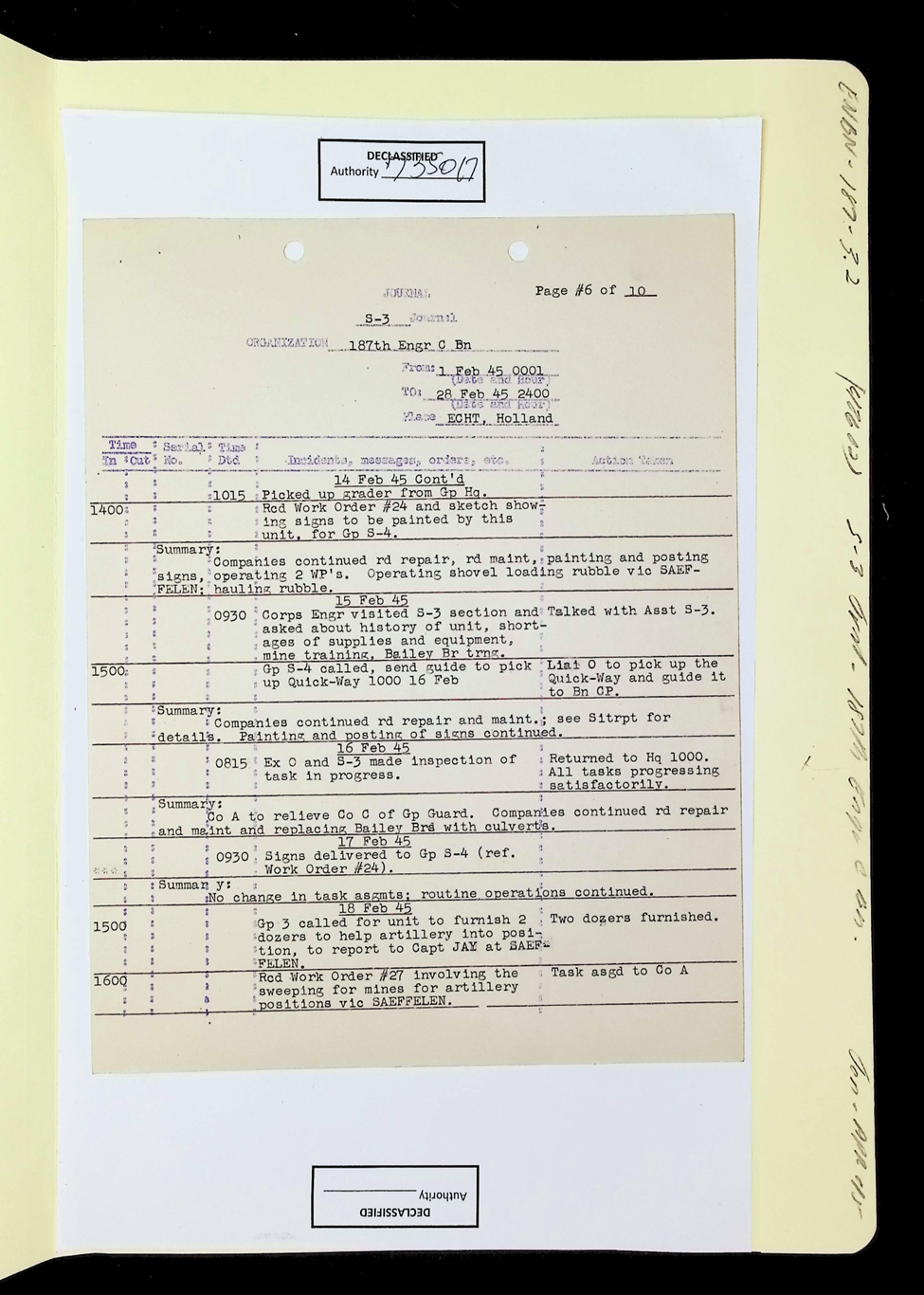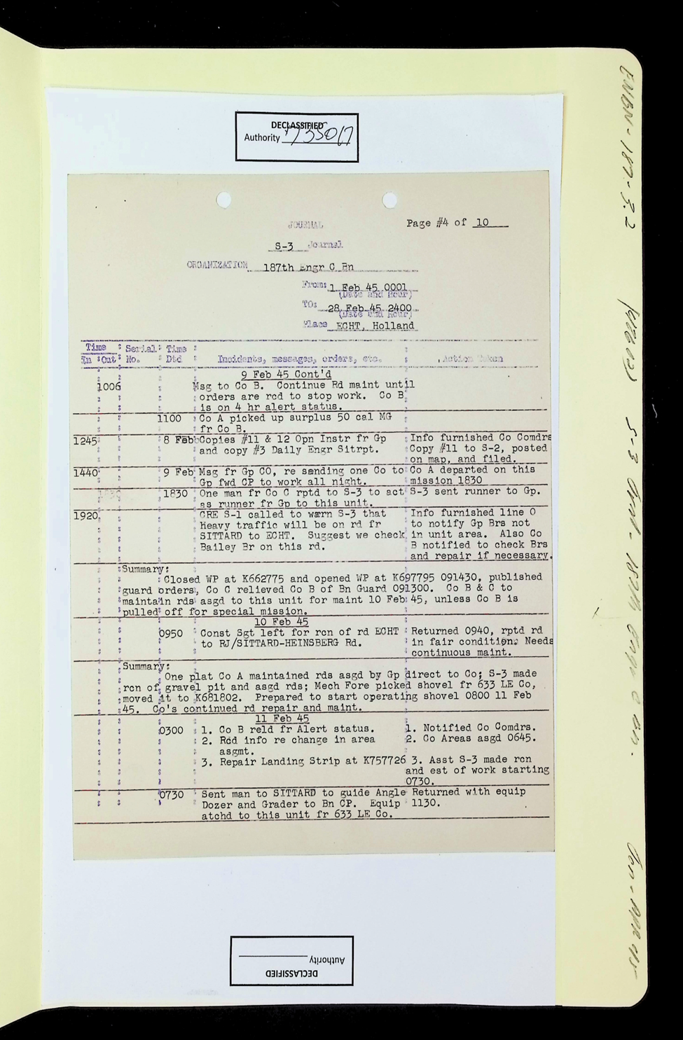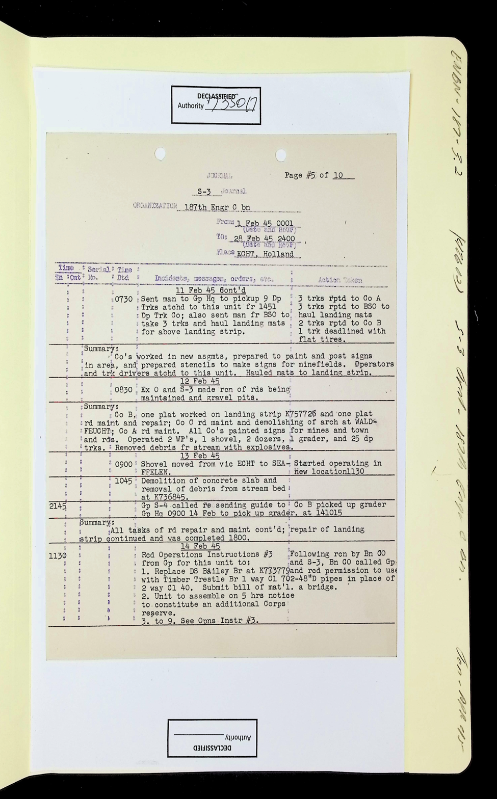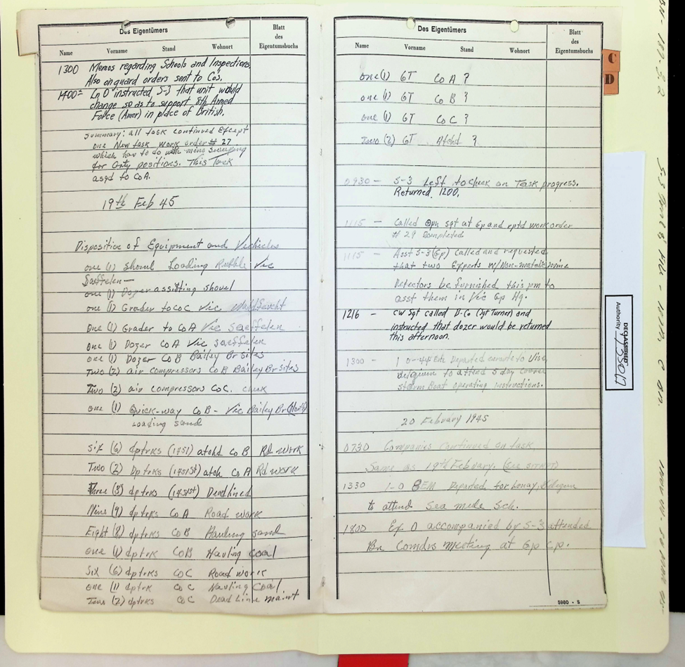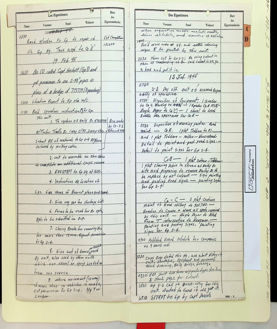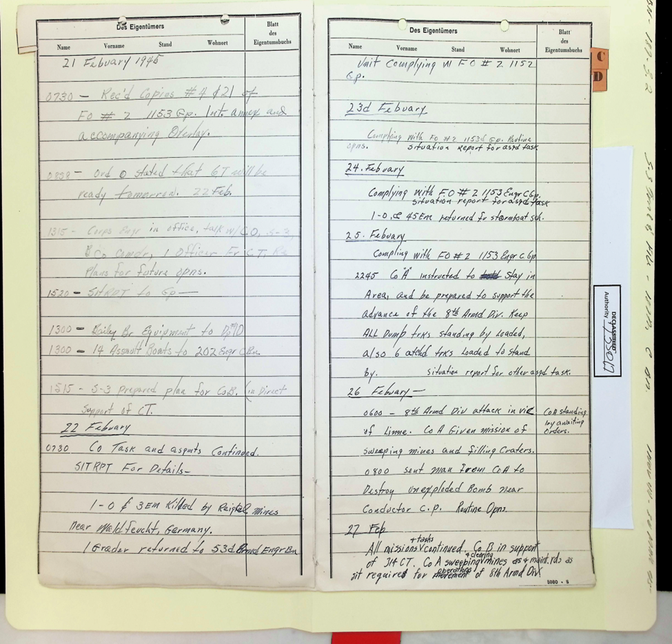 187th Engineer Combat Battalion Daily Situation Reports S-4 February 1945