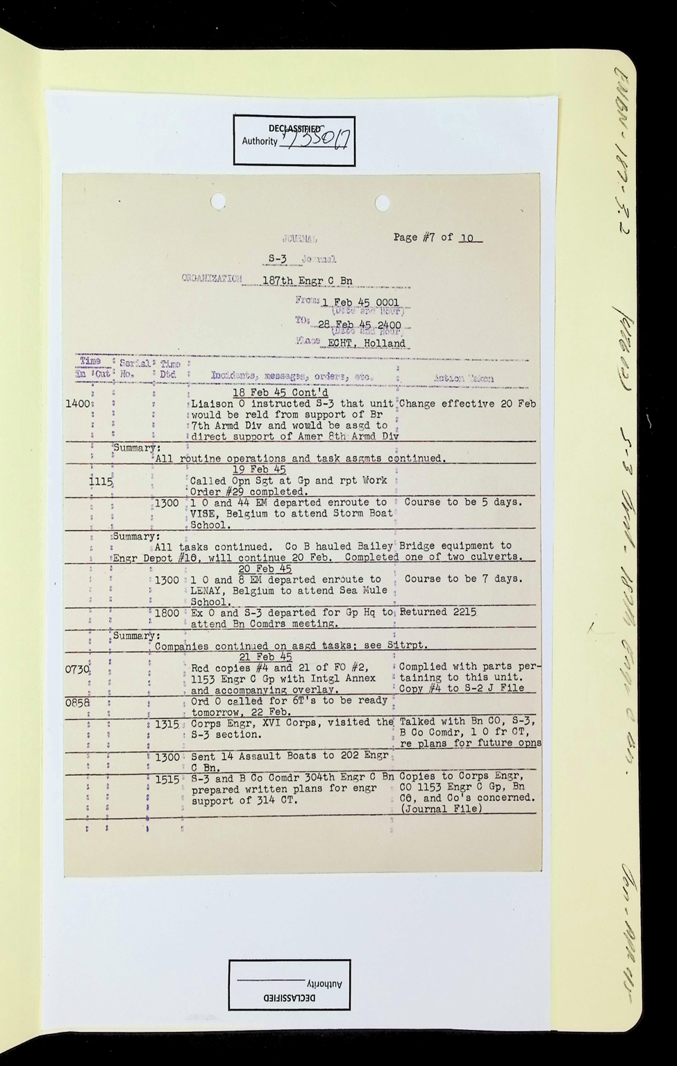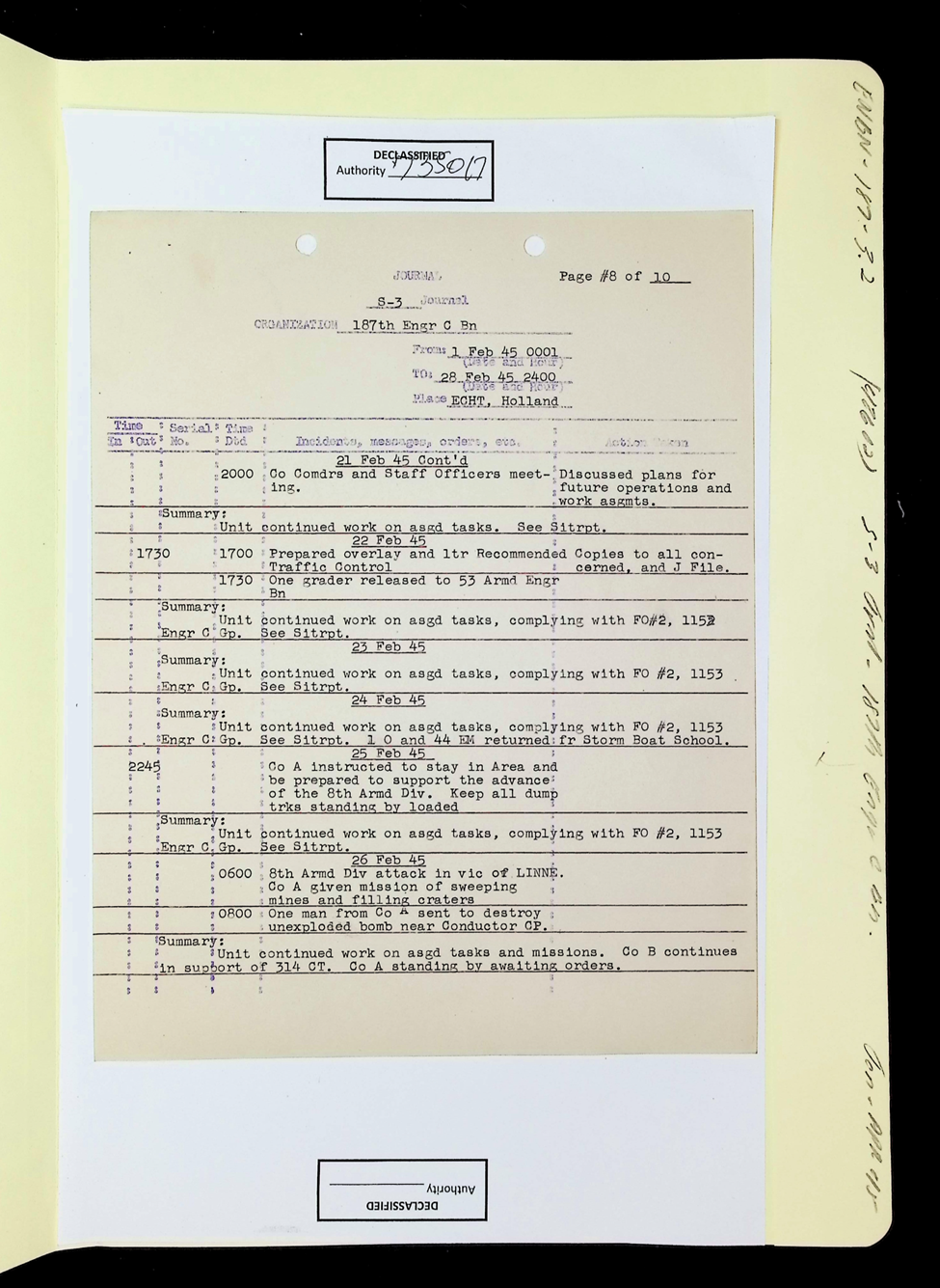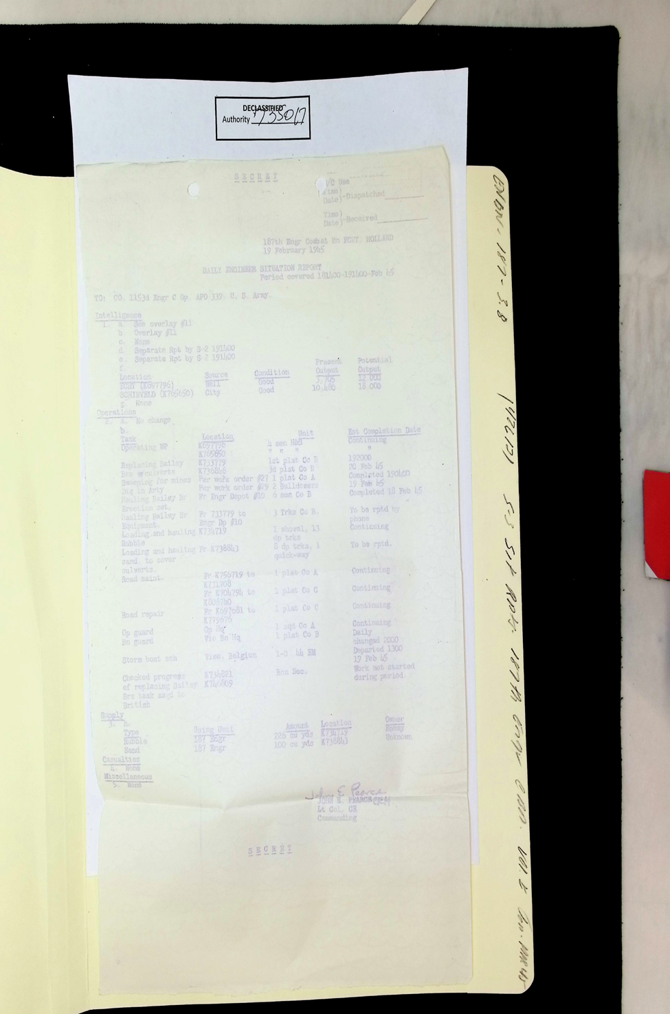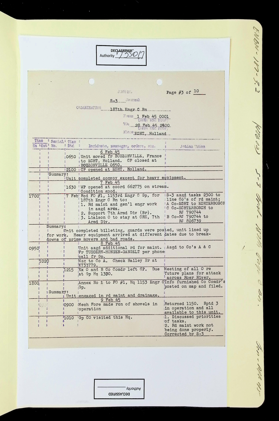 187th Engineer Combat Battalion Daily Situation Reports S-4 February 1945