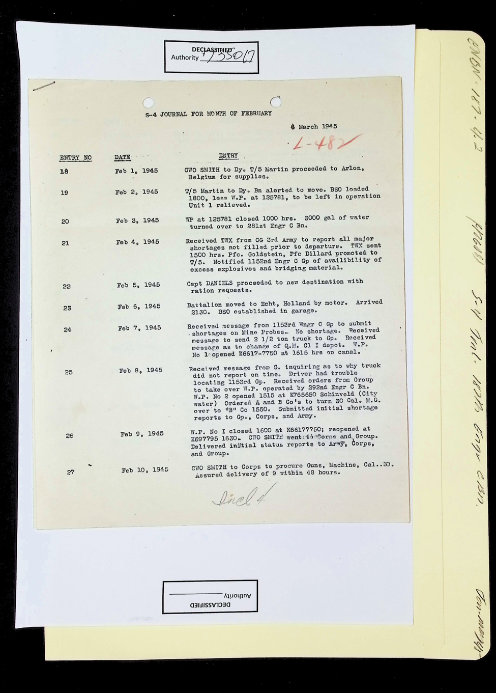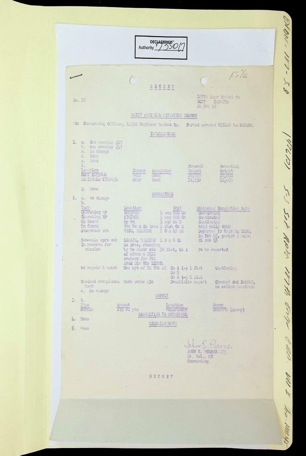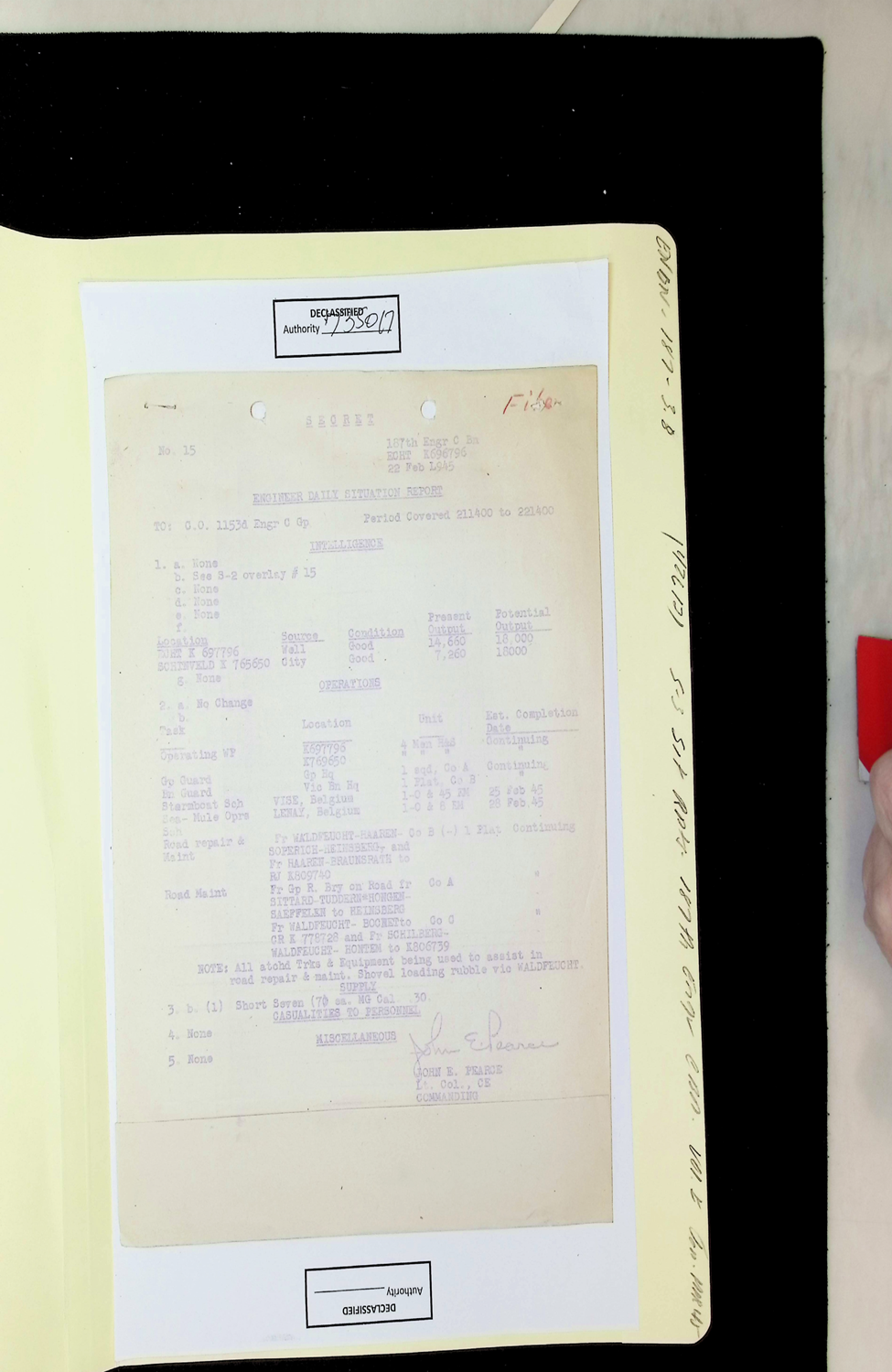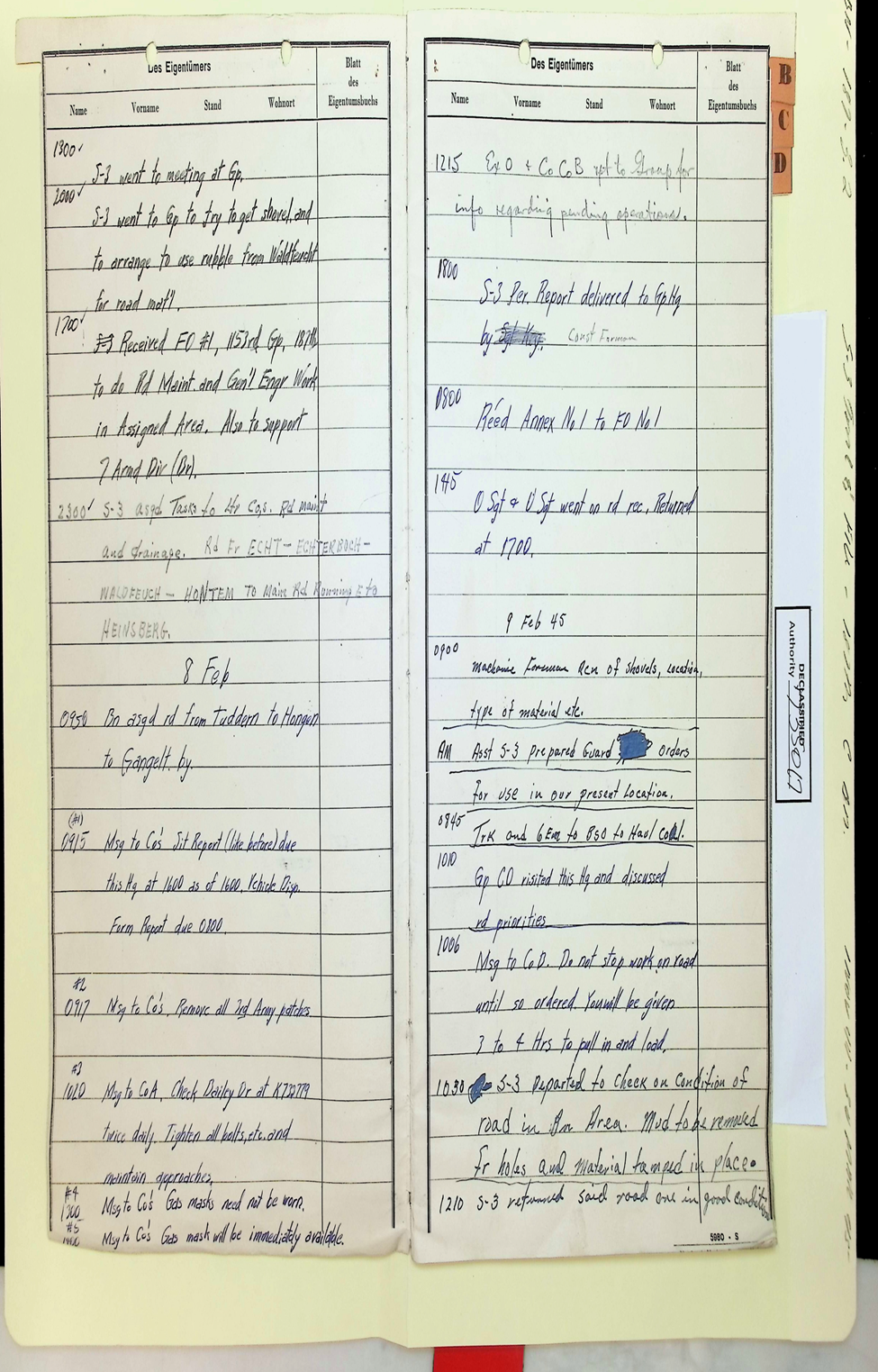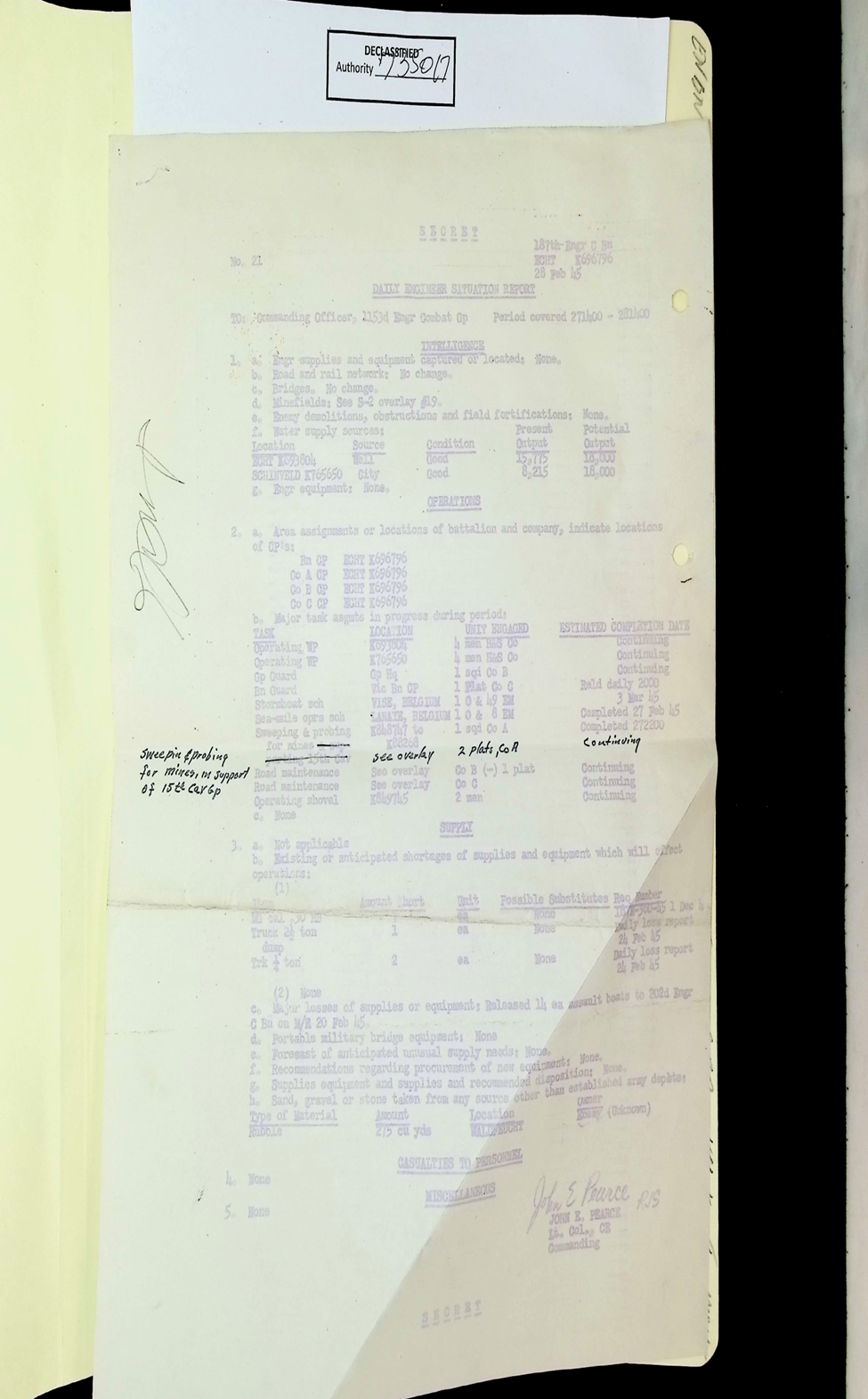 187th Engineer Combat Battalion Daily Situation Reports S-4 February 1945