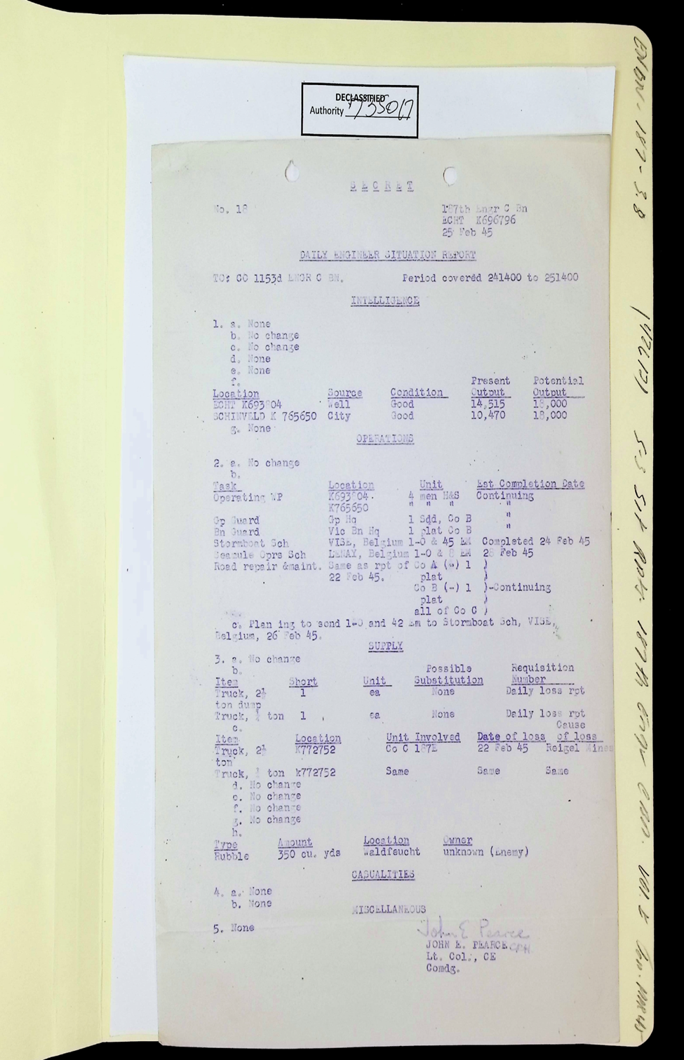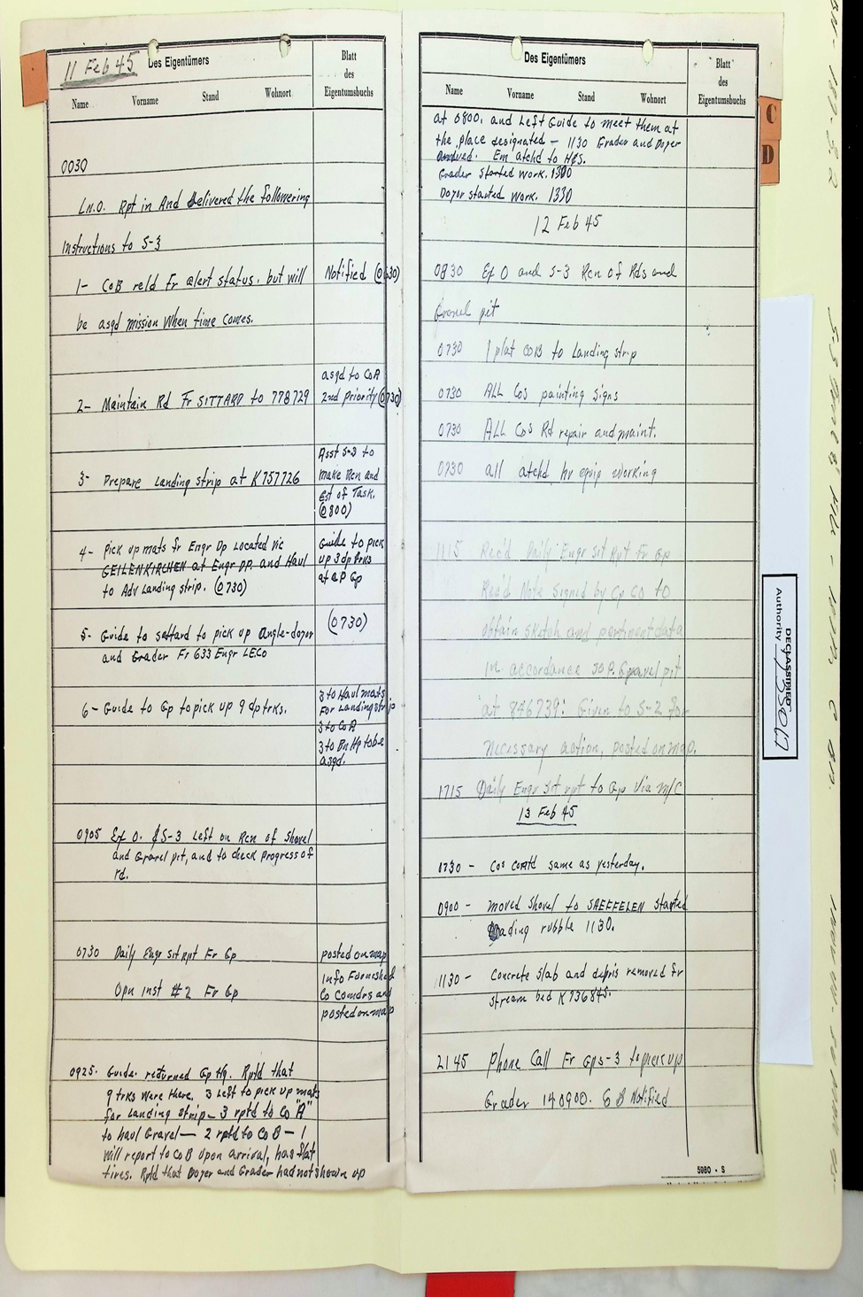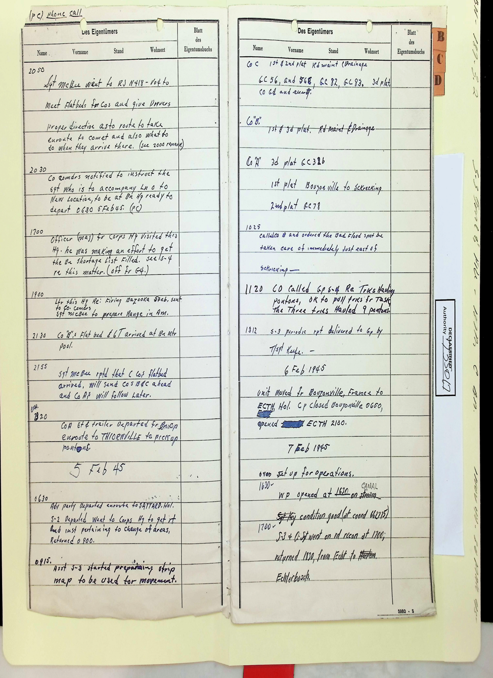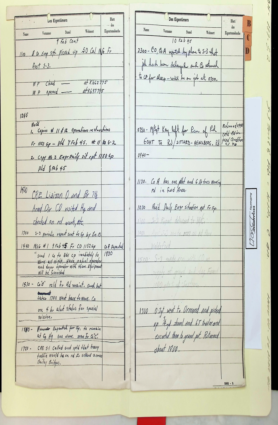 187th Engineer Combat Battalion Daily Situation Reports S-4 February 1945