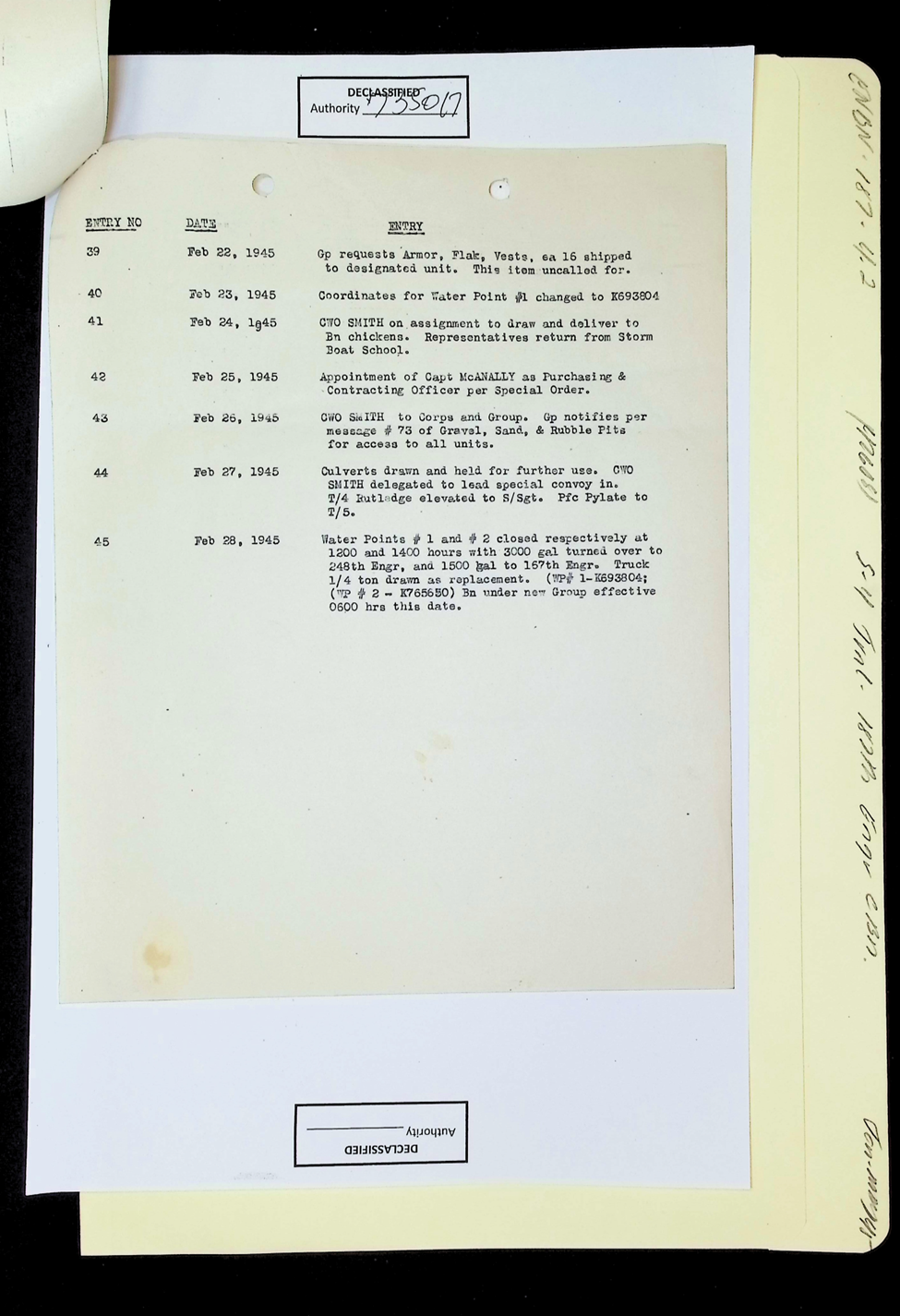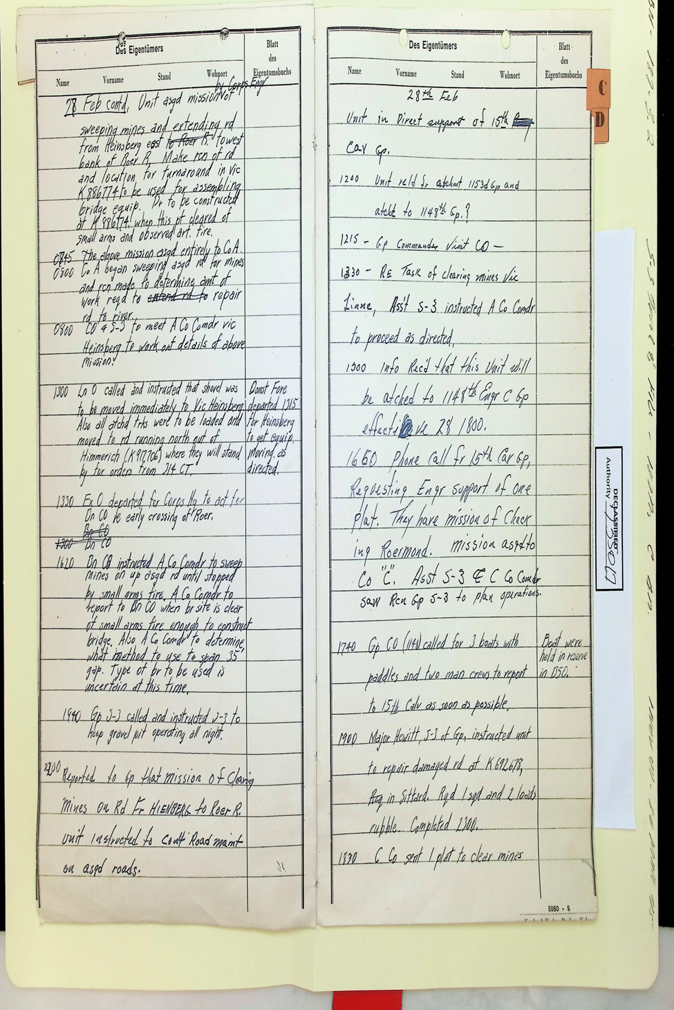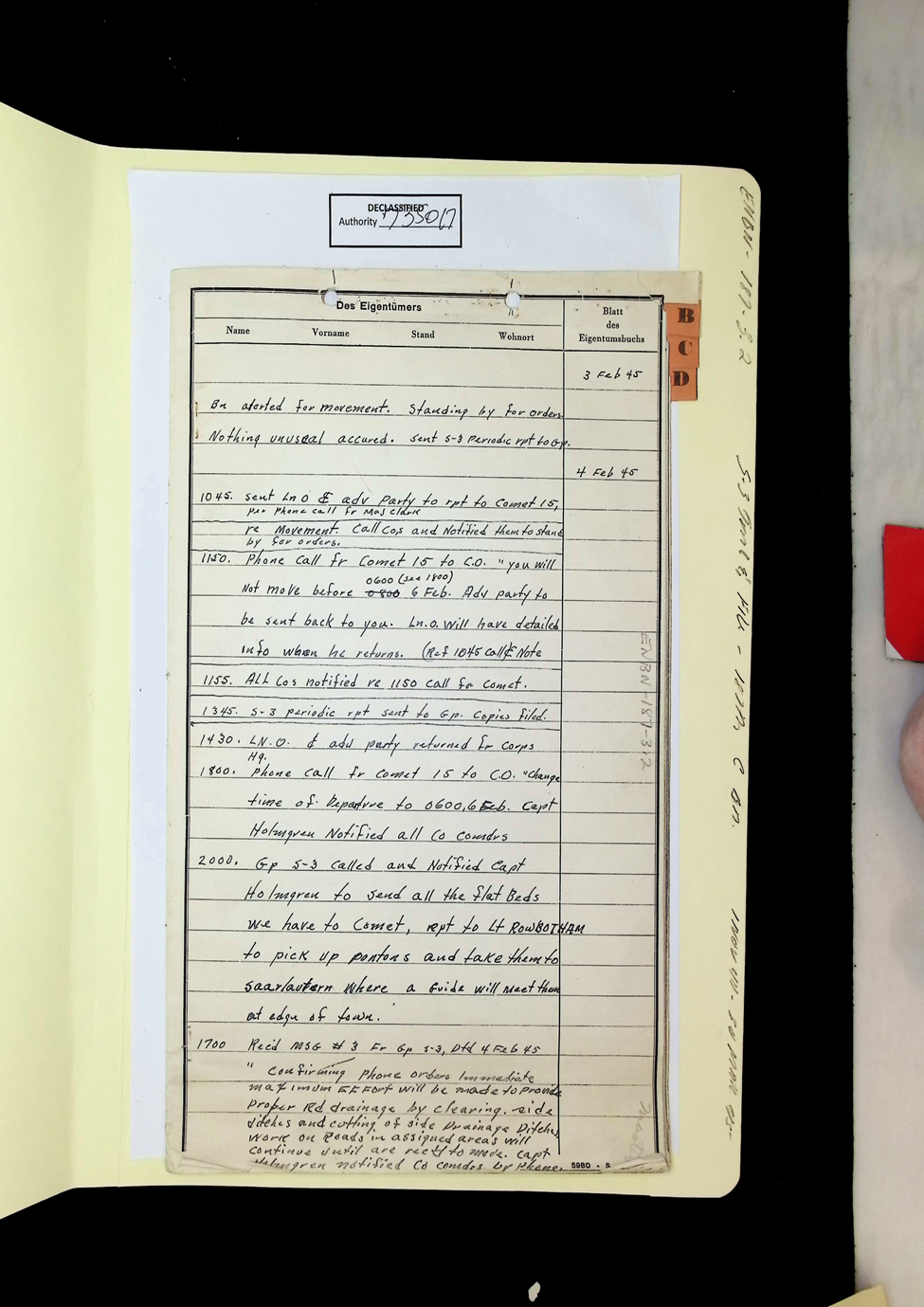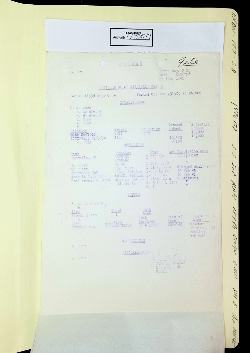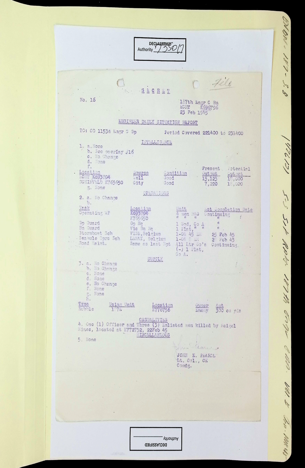 187th Engineer Combat Battalion Daily Situation Reports S-4 February 1945