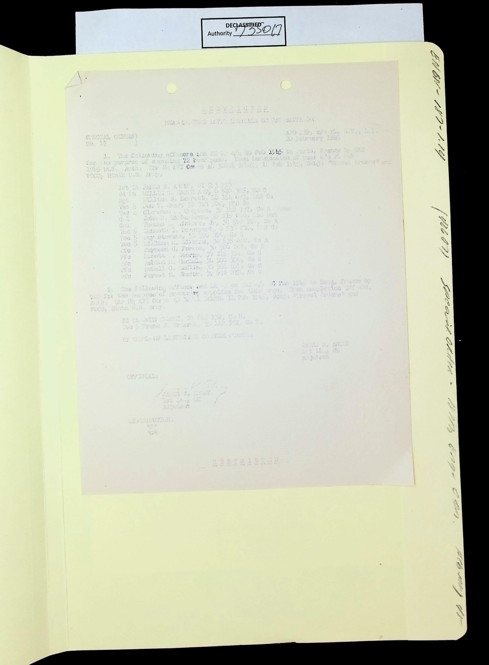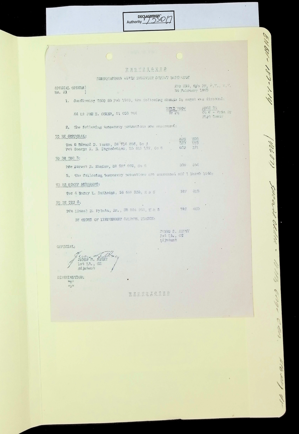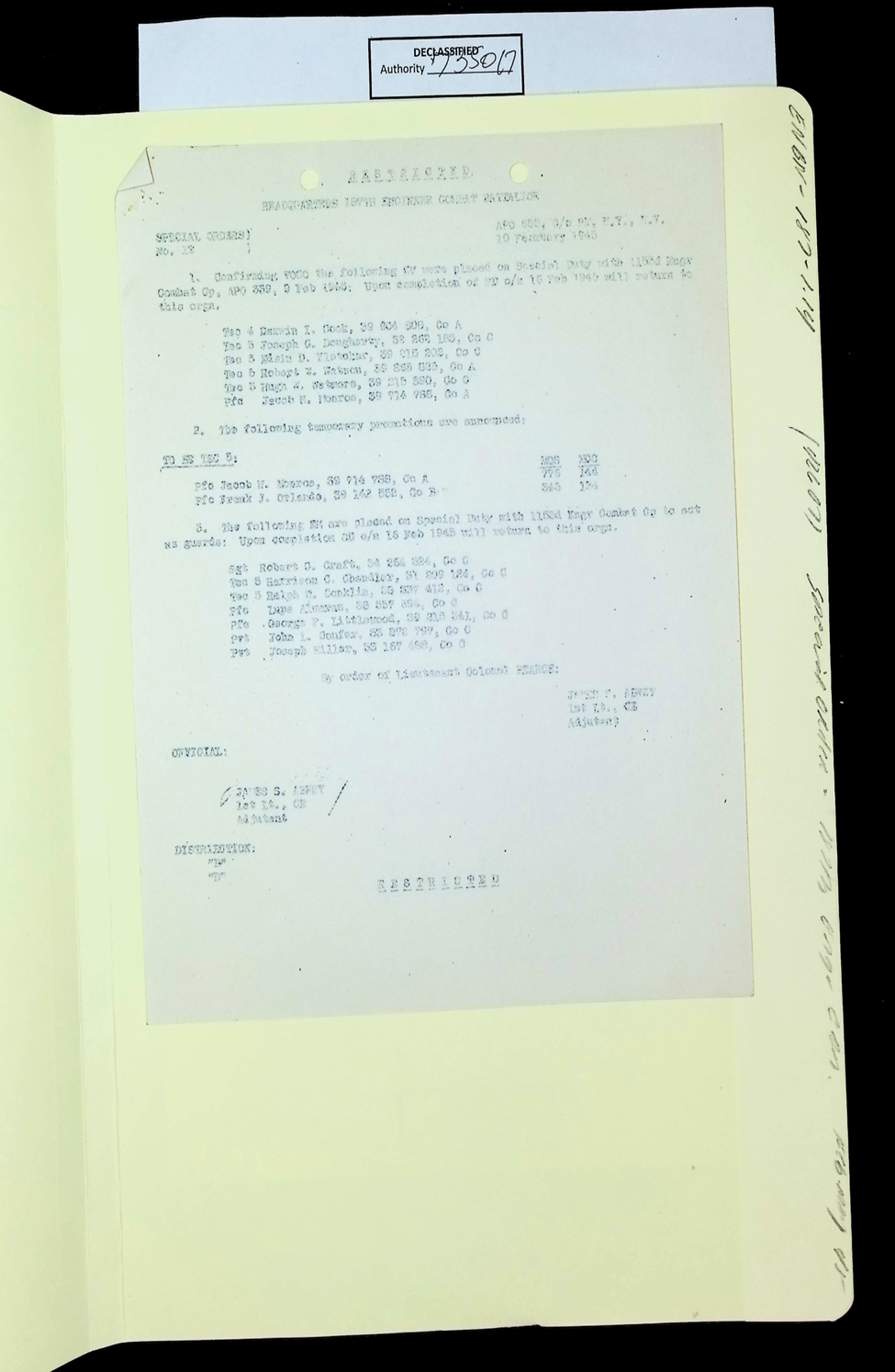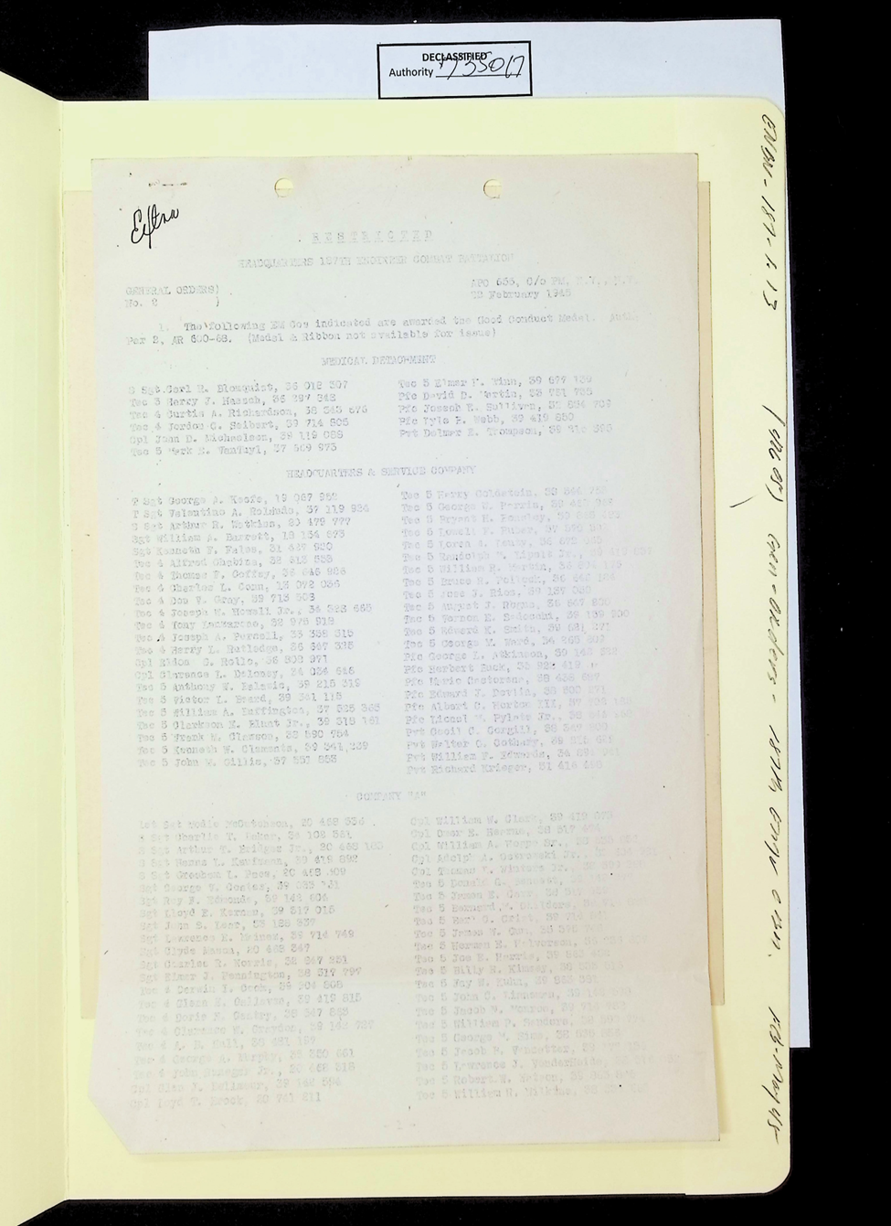 187th Engineer Combat Battalion General Orders Feb 1945