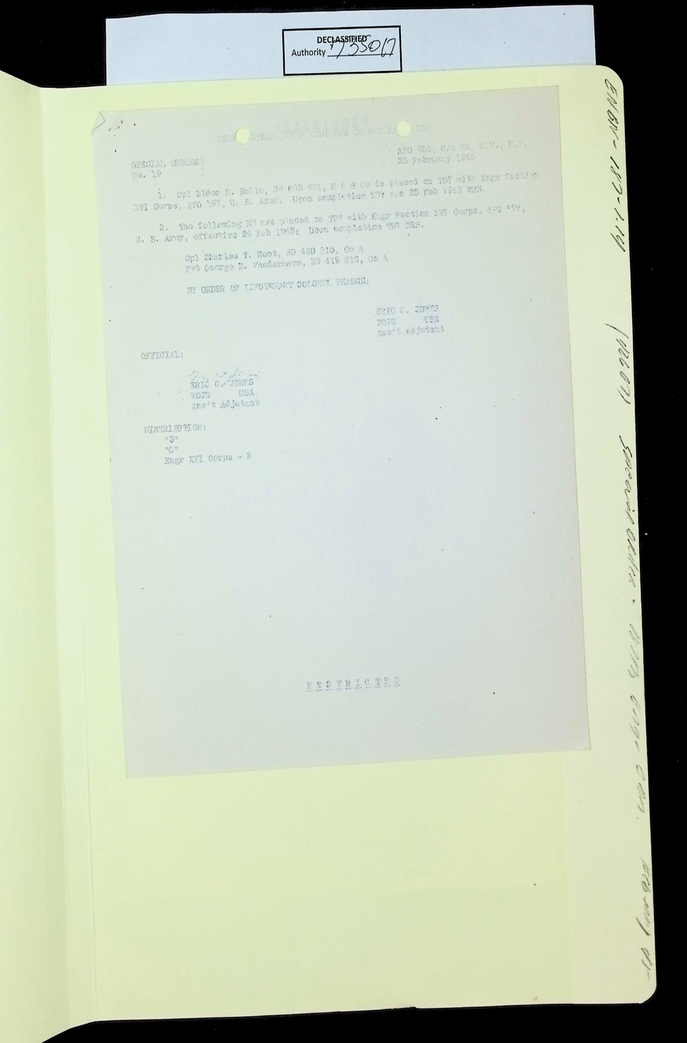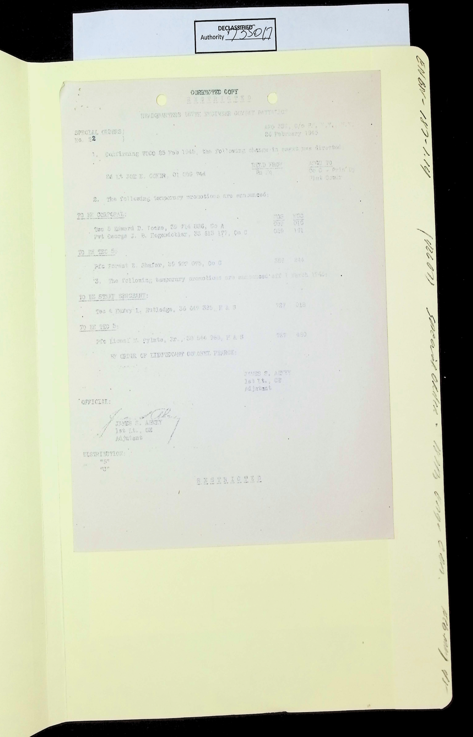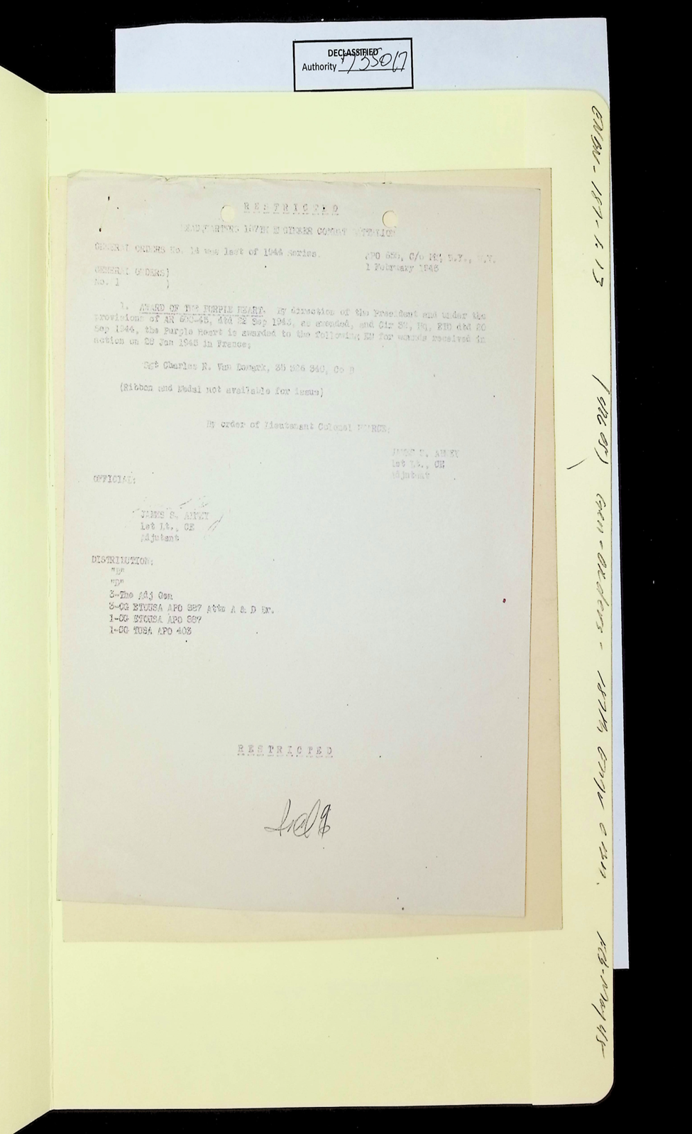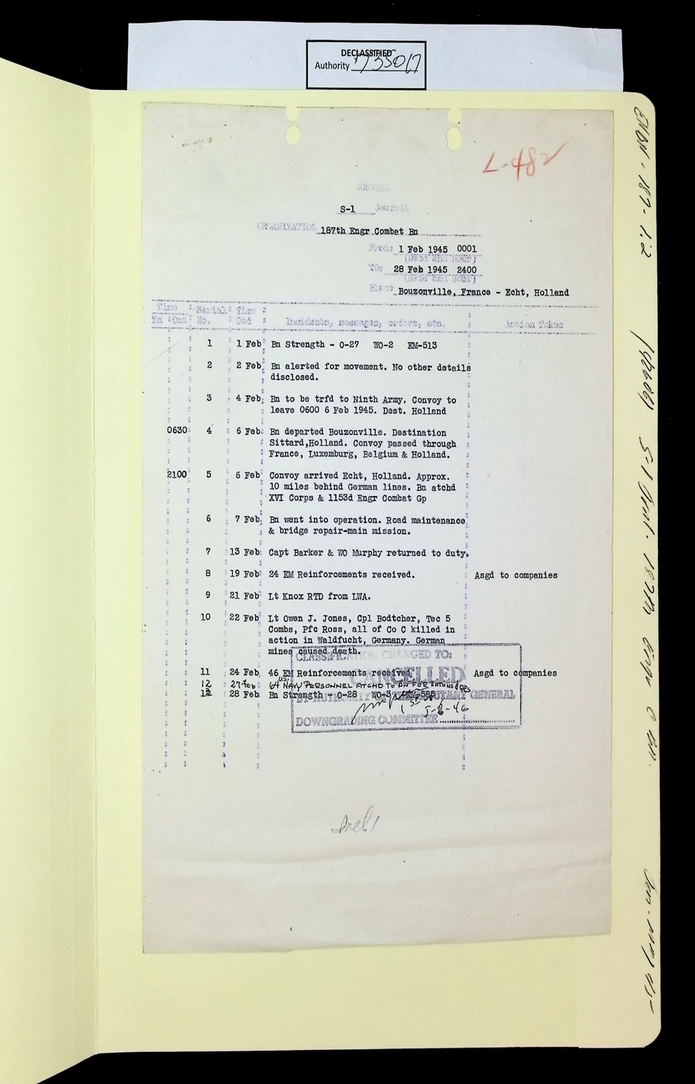 187th Engineer Combat Battalion General Orders Feb 1945