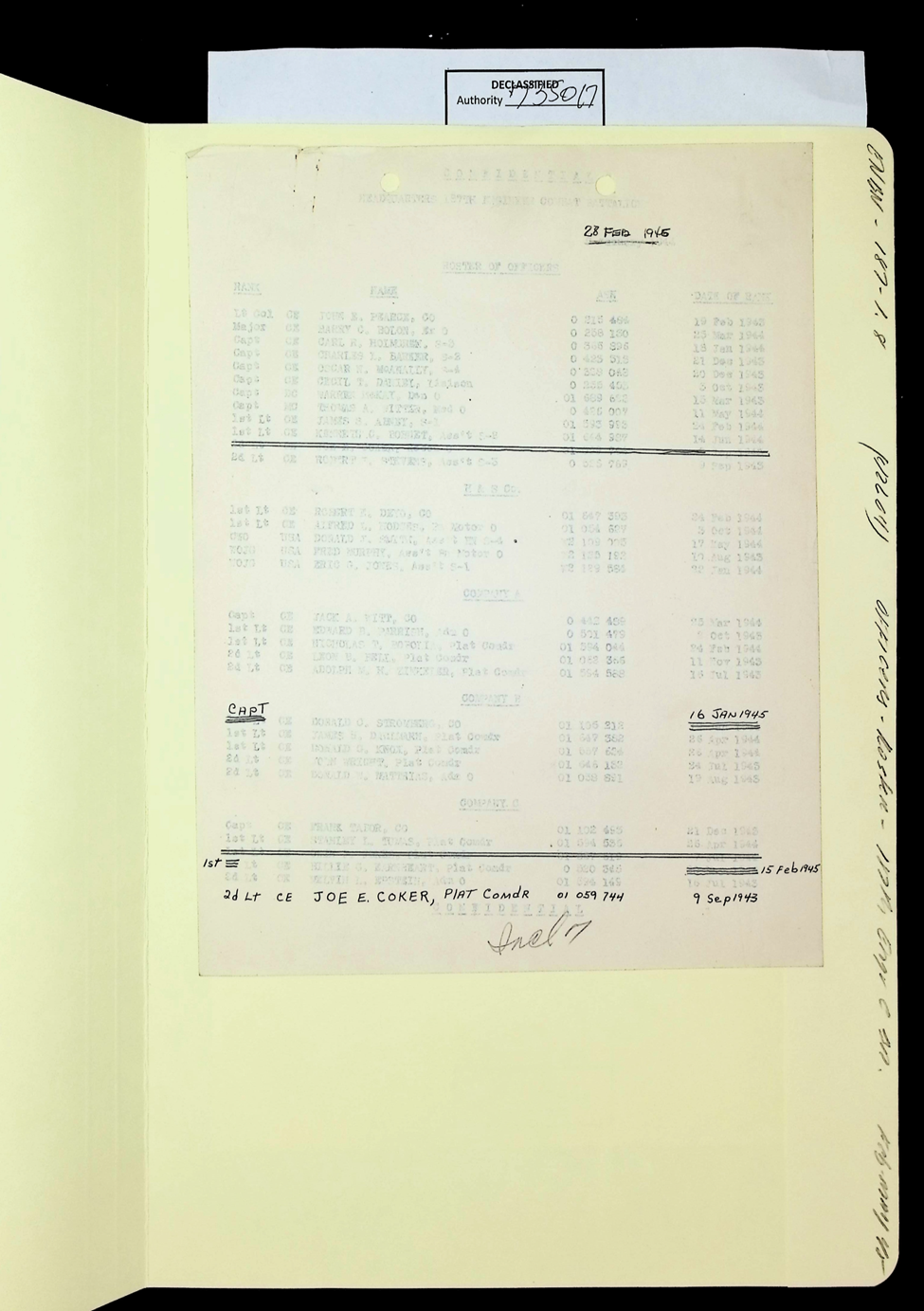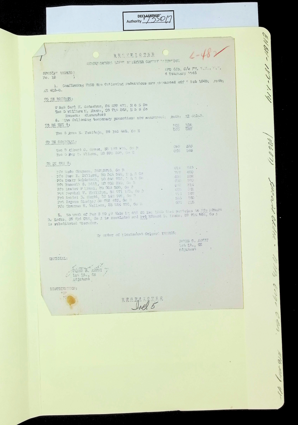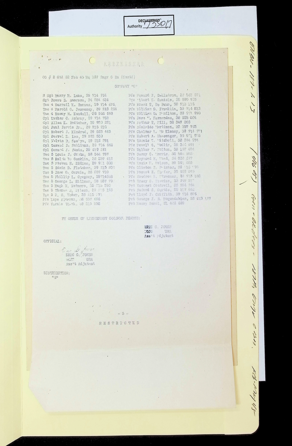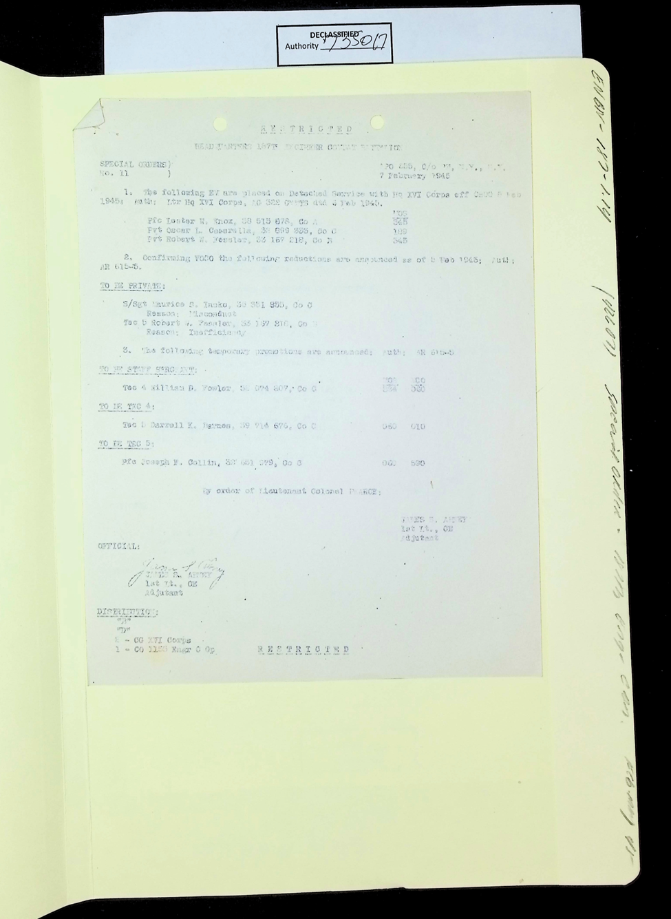 187th Engineer Combat Battalion General Orders Feb 1945