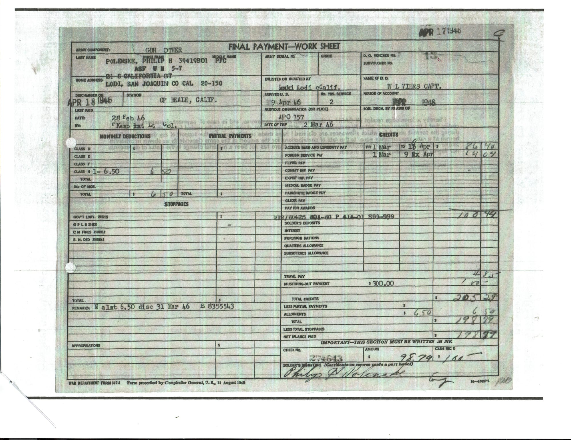 After graduating from Lodi High School in 1943, he entered the Army during WWII. He served with the 187th Engineer Combat Battalion and for a time under General Patton. He was proud of his service and a strong supporter of the men and women in the military. After the war, he returned to Lodi and worked in the printing industry for 41 years.