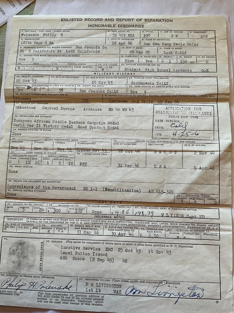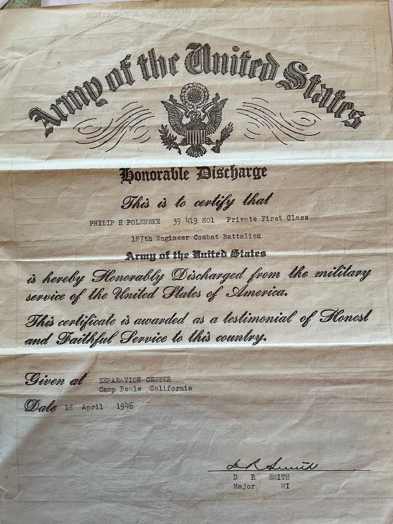 Another Soldier of the 187th ECB passed away. Philip H. Polenske