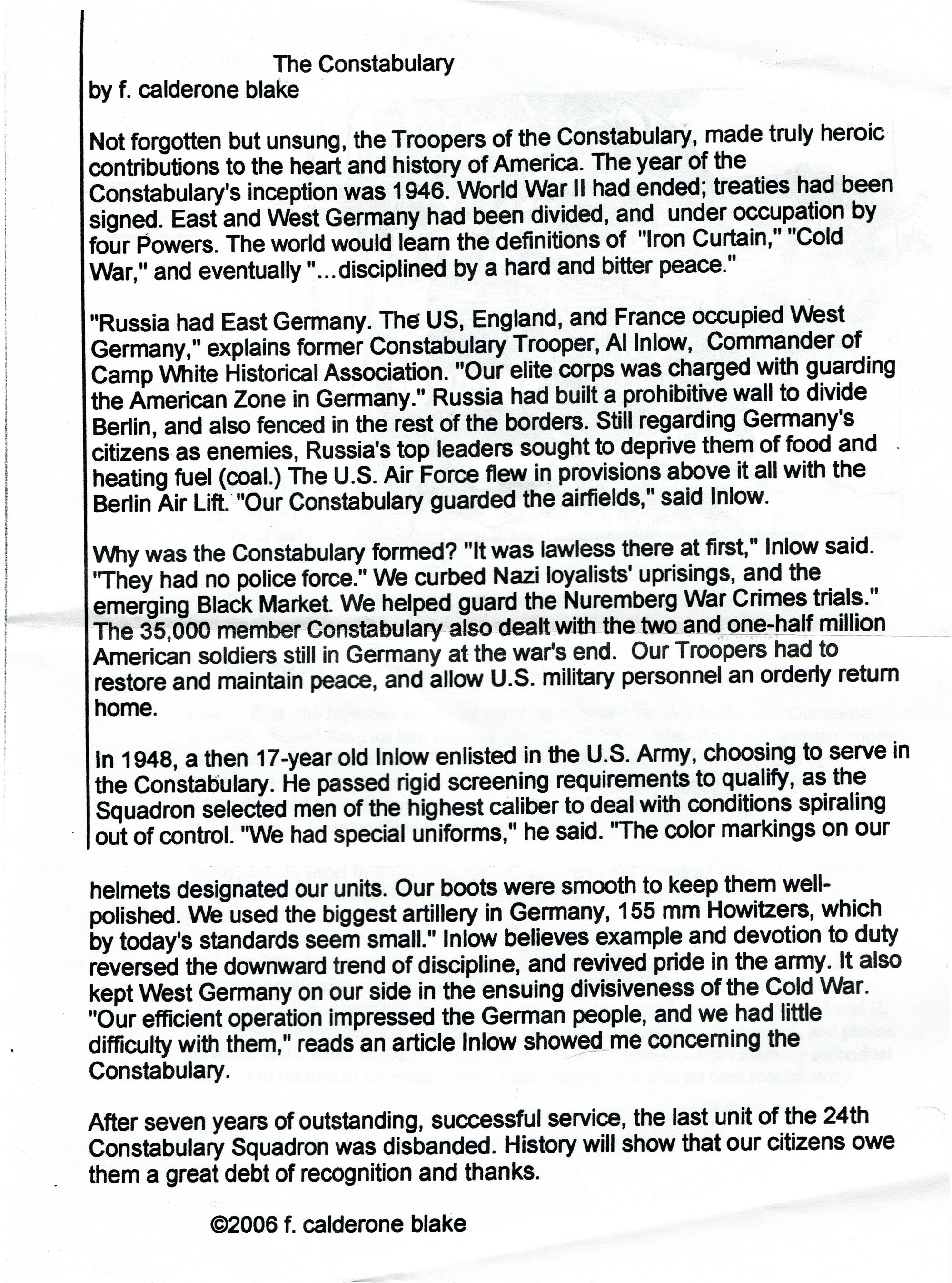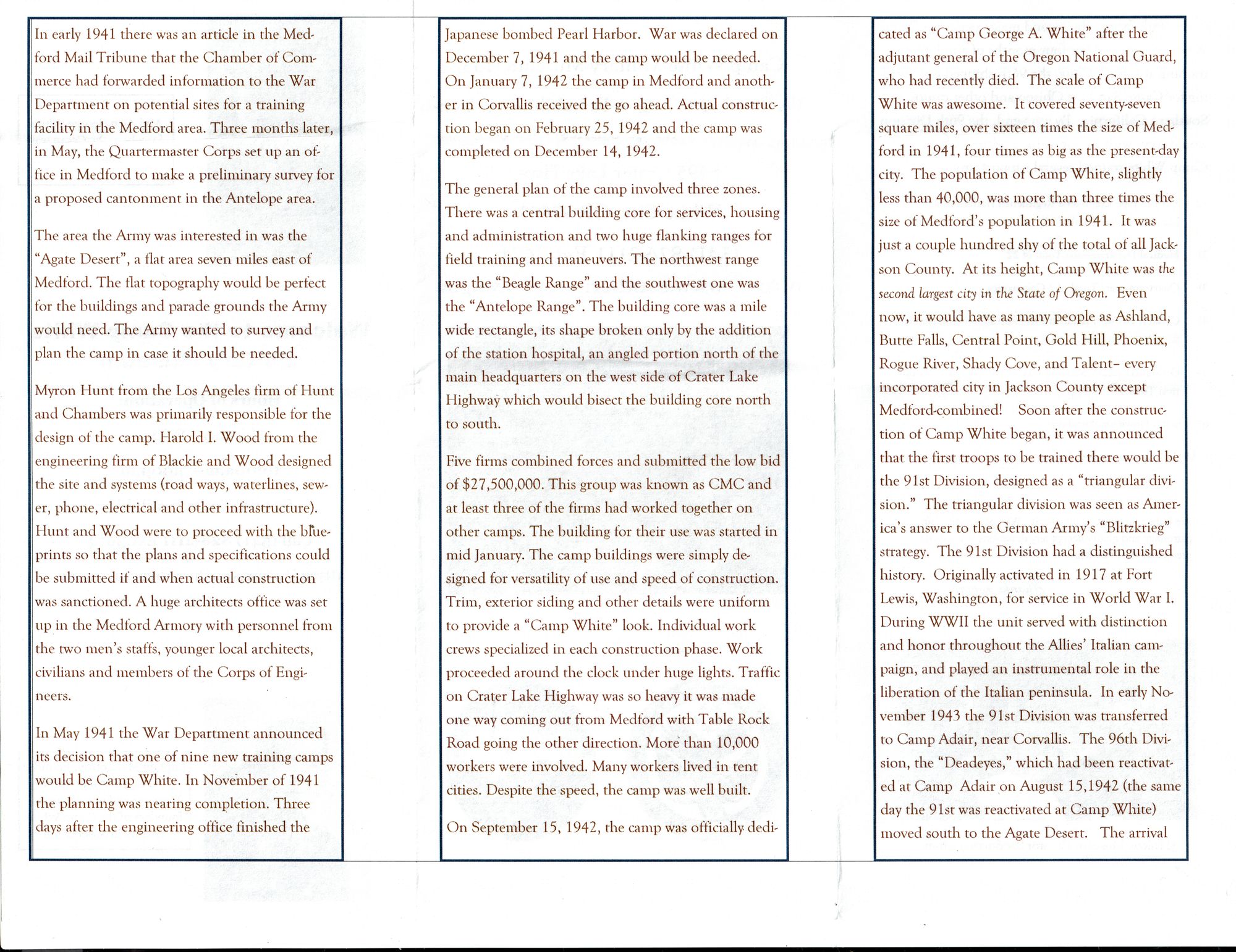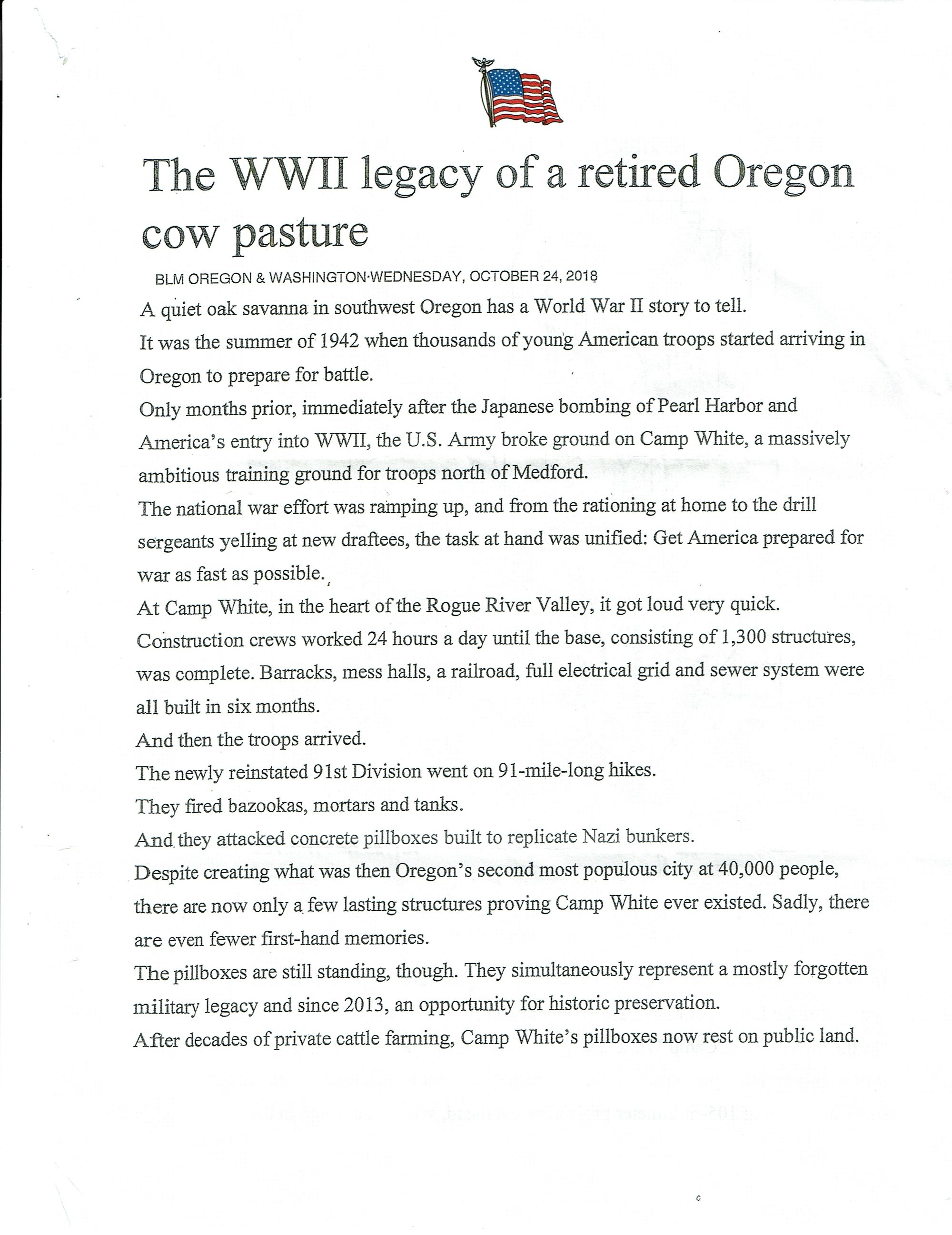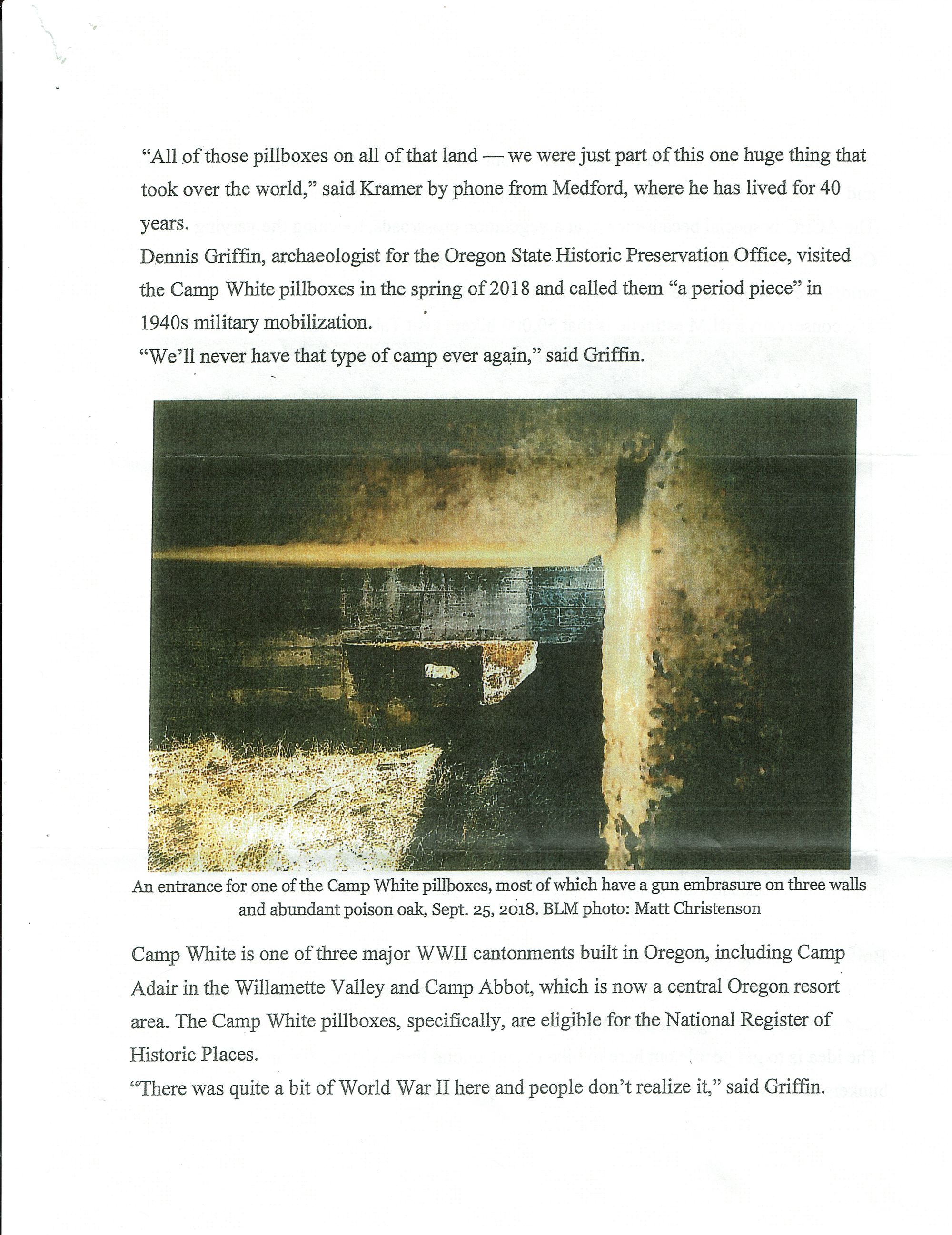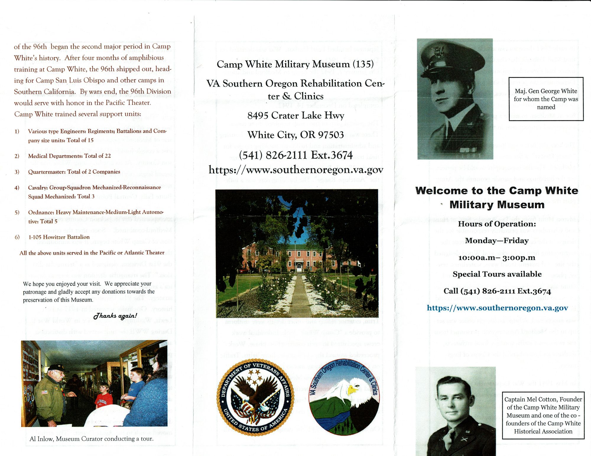 Thanks to Al Inlow, Museum Curator at the Camp White, Oregon museum
