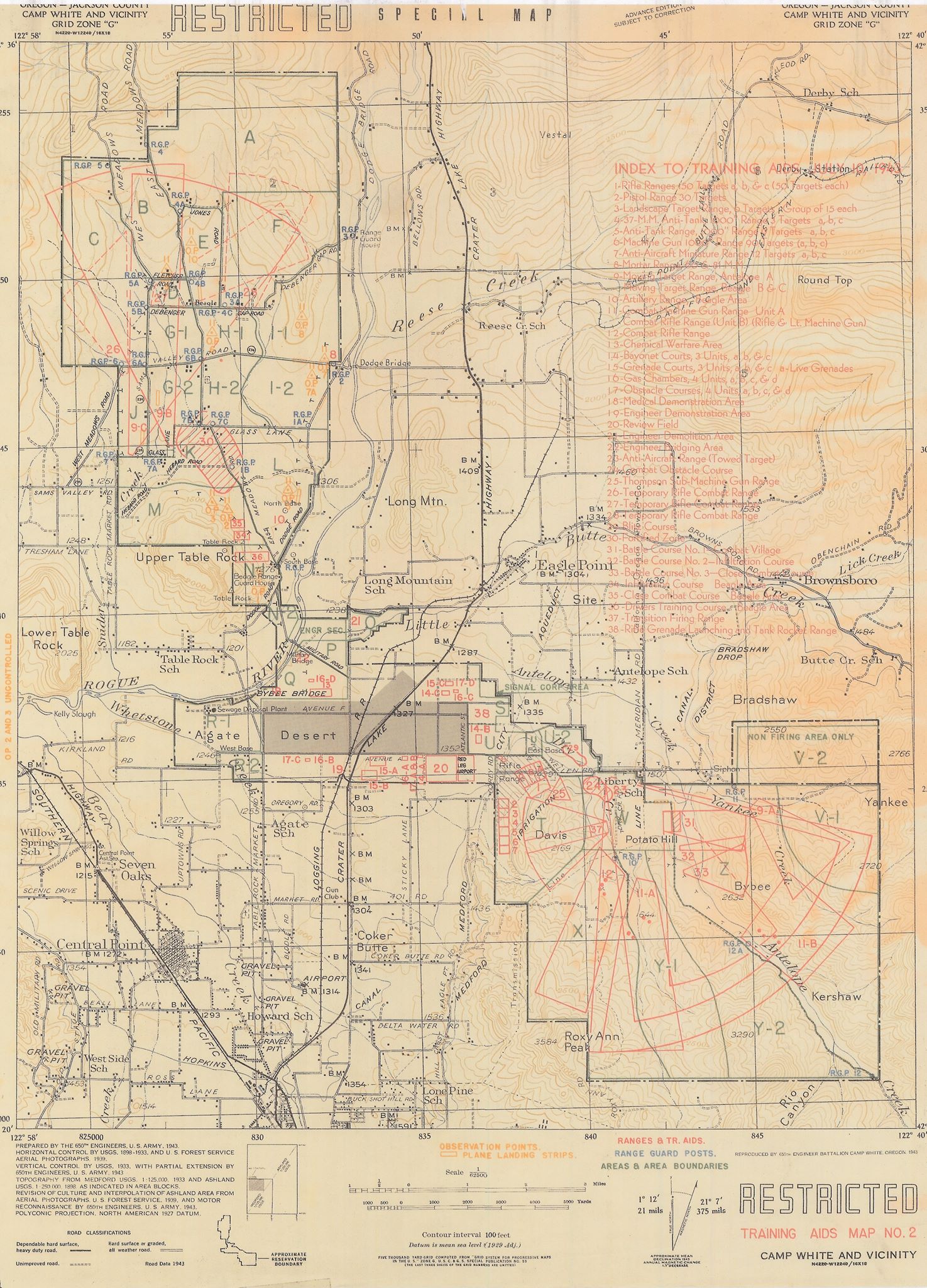Construction on Camp White began on Feb 25, 1942, and was complete on December 14, 1942. Camp White was named after Major George A. White and was deactivated in April 1946. This Camp trained more than 110,000 troops during WWII. It was at one time the second-largest city in Oregon.
