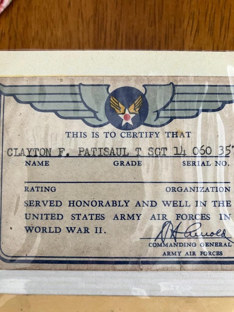 My Uncle Pat Patisaul served in the Pacific Theater during WWII. Training began in Douglas, Arizona, then he finished training in Kern County, California. He married Juanita in Douglas, then moved to Wasco, Ca.