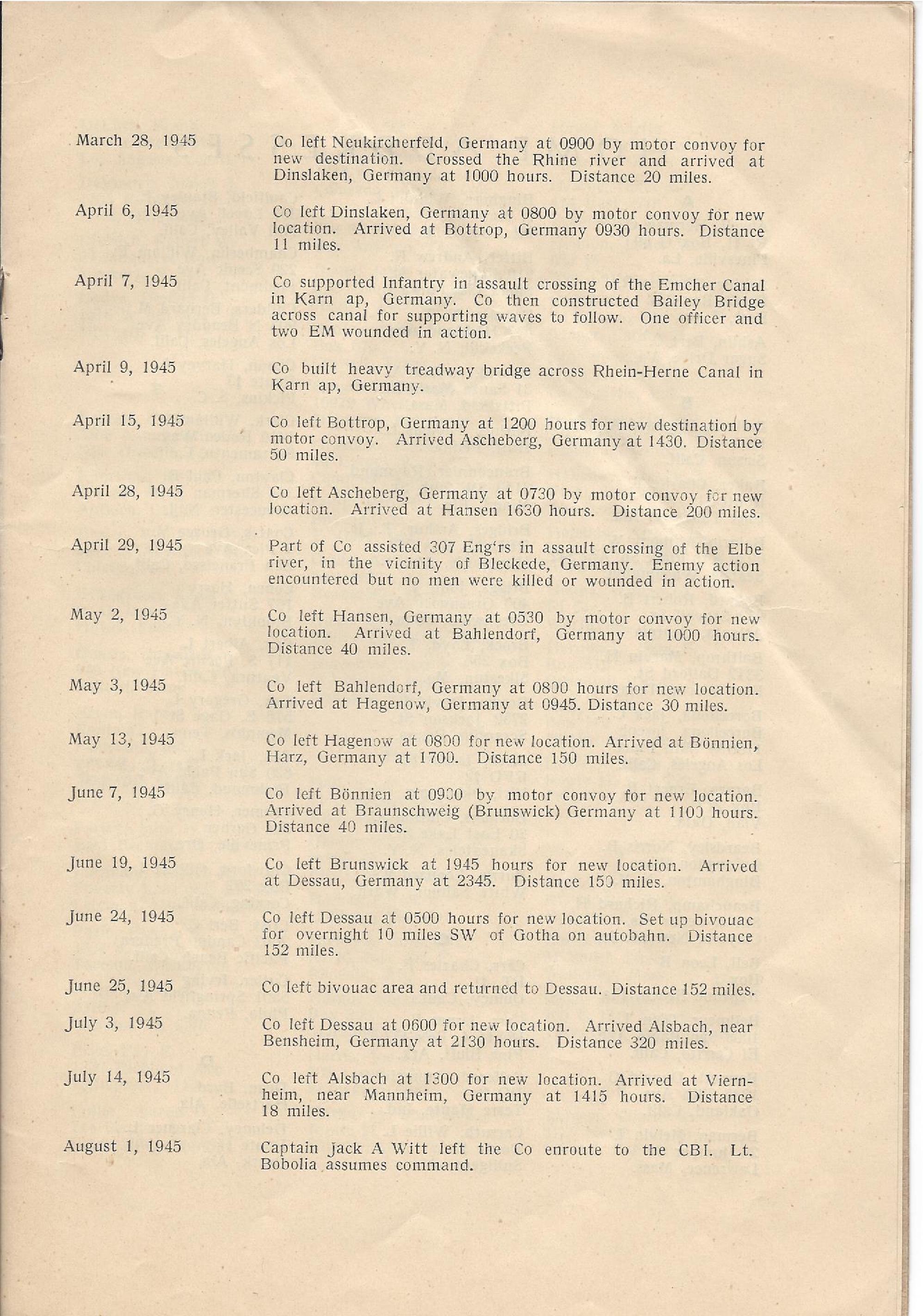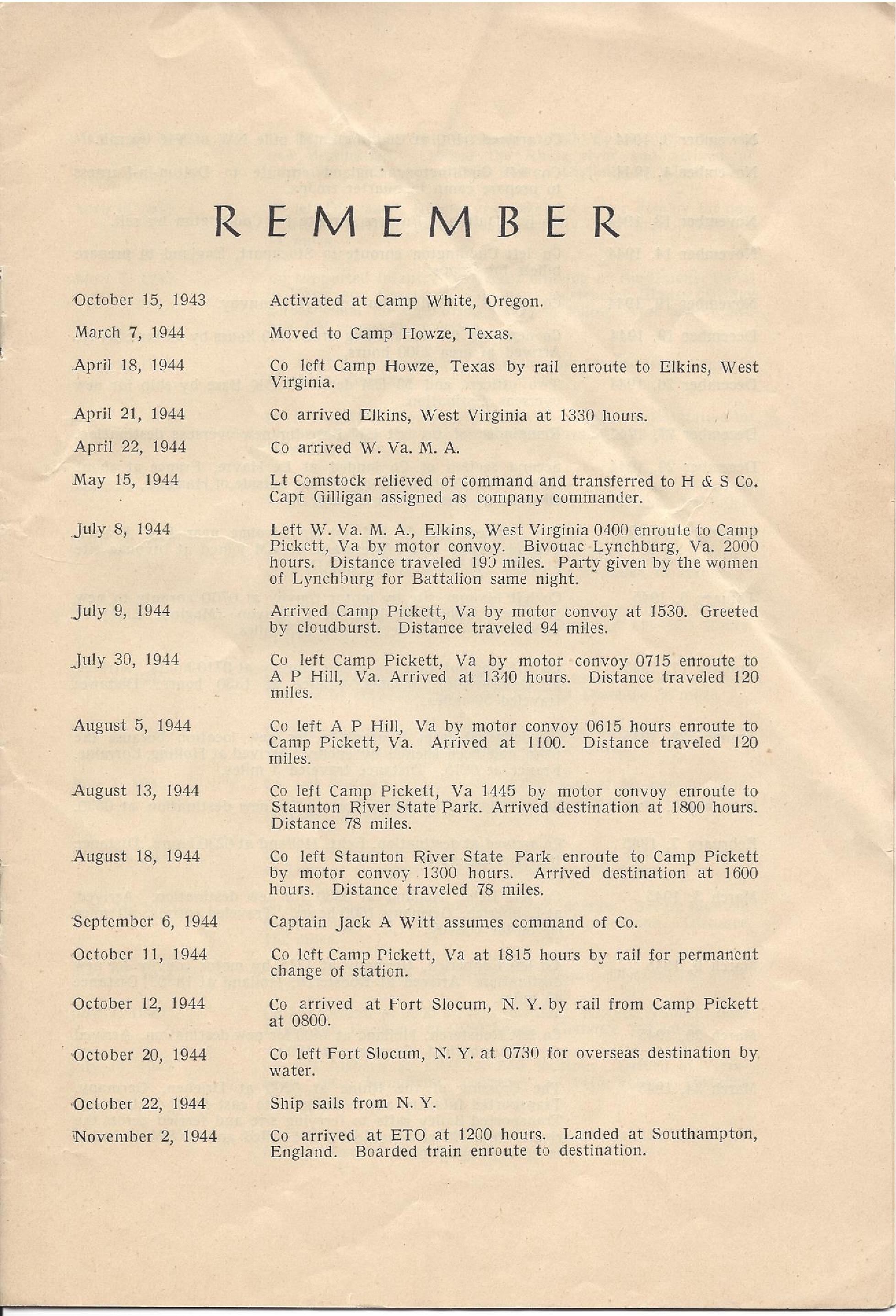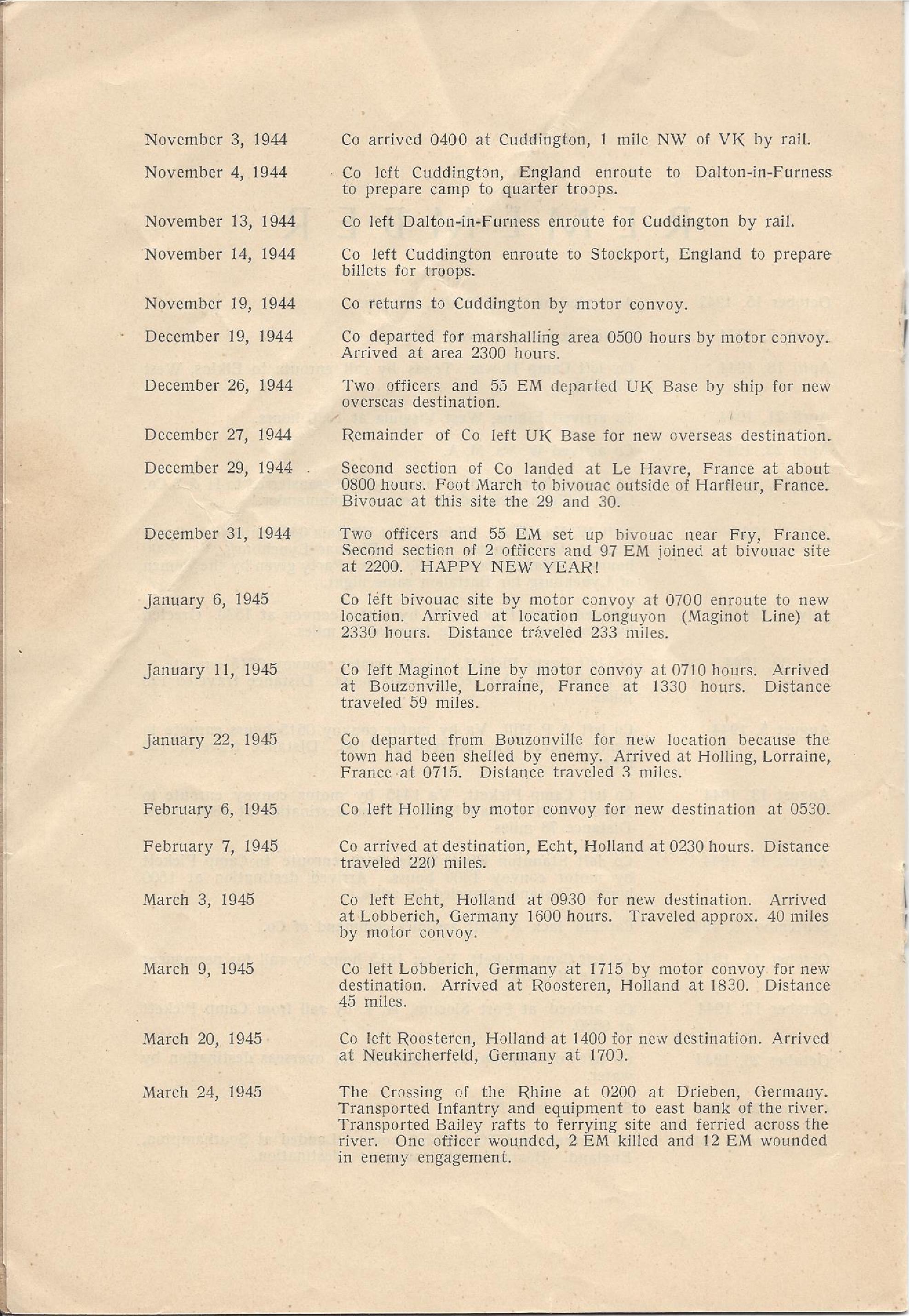 187th Engineer Combat Battalion Company A Troop Movement Details