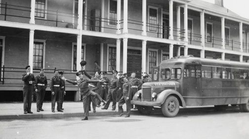 At noon on the 20th, the battalion was assembled on deck to watch President Roosevelt pass on his way to campaign rallies in greater New York. The distance was too great to see the Commander in Chief clearly, but many men felt that the President had come down especially to see them off.
