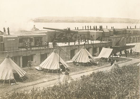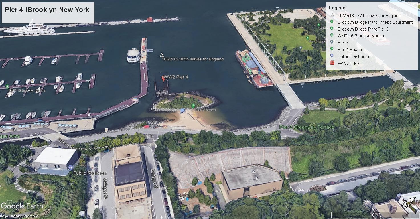 The next morning the train arrived at New Rochelle, New York. The battalion hiked from the siding to a wharf from which ferries transported the men to Fort Slocum. Those same ferries were to receive lots of traffic from the 187th in the week that followed.