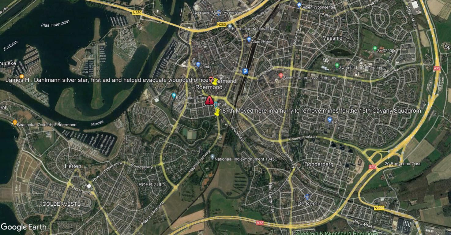 On February 23rd, the big offensive along the Roer began and by the first of March, troops of the Ninth Army were 40 miles inside Germany. The night of February 28 found the second platoon of Charlie company, led by Lt. Tumas, spearheading a drive by the 15th Calvary Squadron into the town of Roermond, Holland. Although hundreds of mines were removed and deactivated that night, there were no casualties.